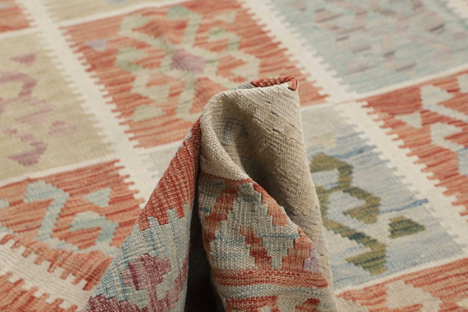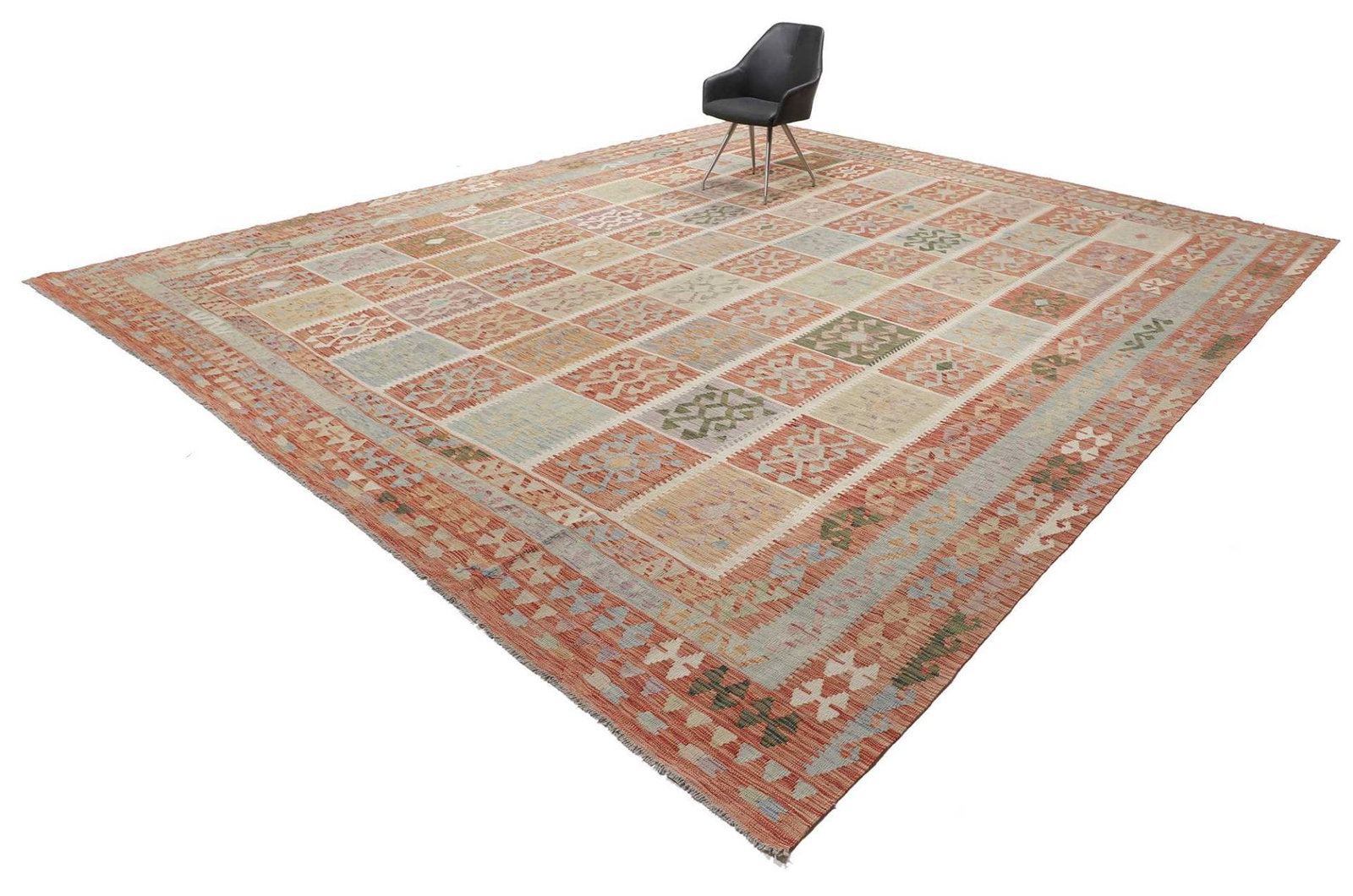 Kelim Teppich 407x496cm, handgewebt, rustikales Flair, Wolle