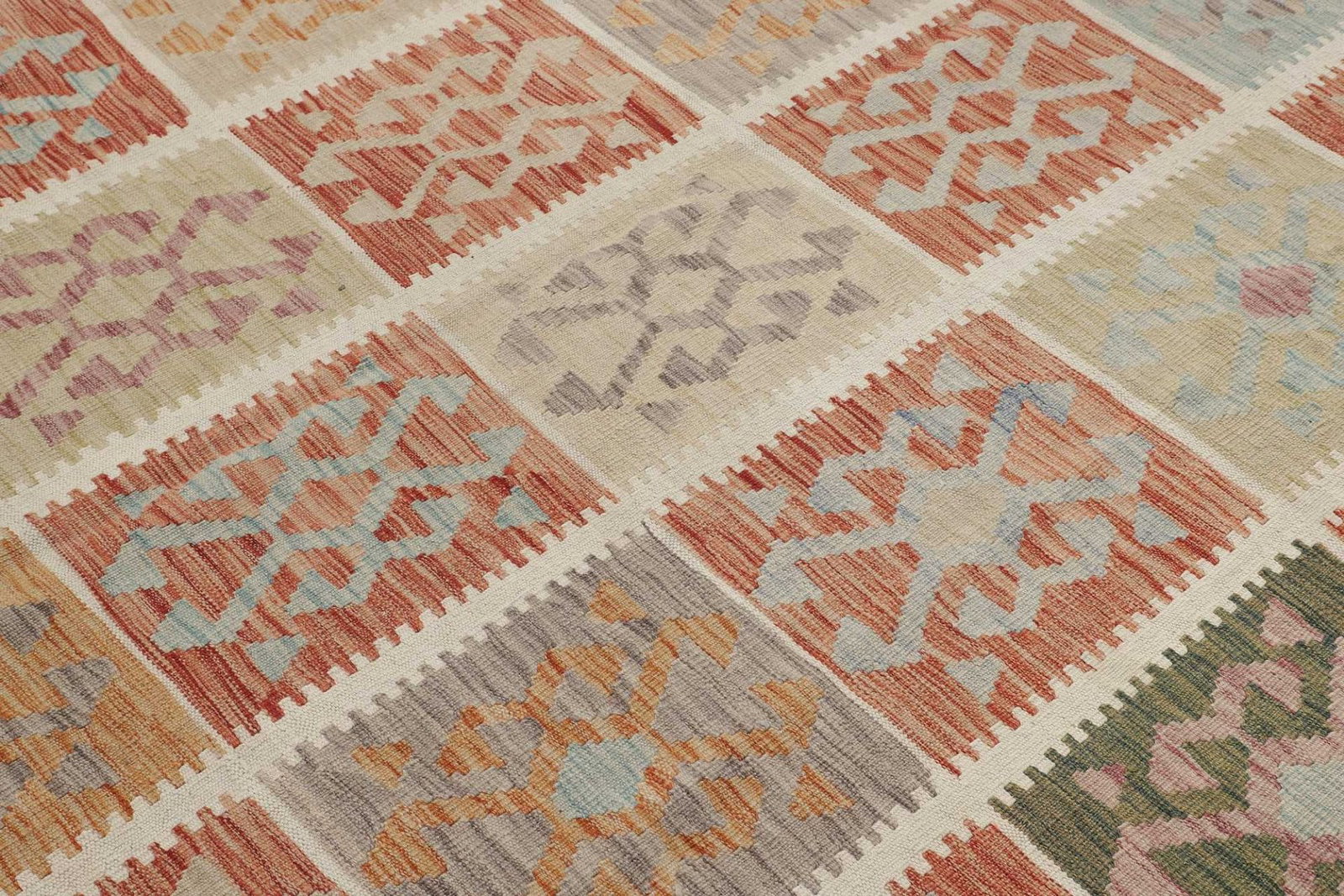Kelim Teppich | Knotendichte: ca. 200.000 Knoten/m² | Material: 100% Schurwolle und 100% Baumwolle | Größe: 407 x 496 cm | Zustand: Handgewebte Qualität | Herkunft: Pakistan | Florhöhe: ca. 5 mm