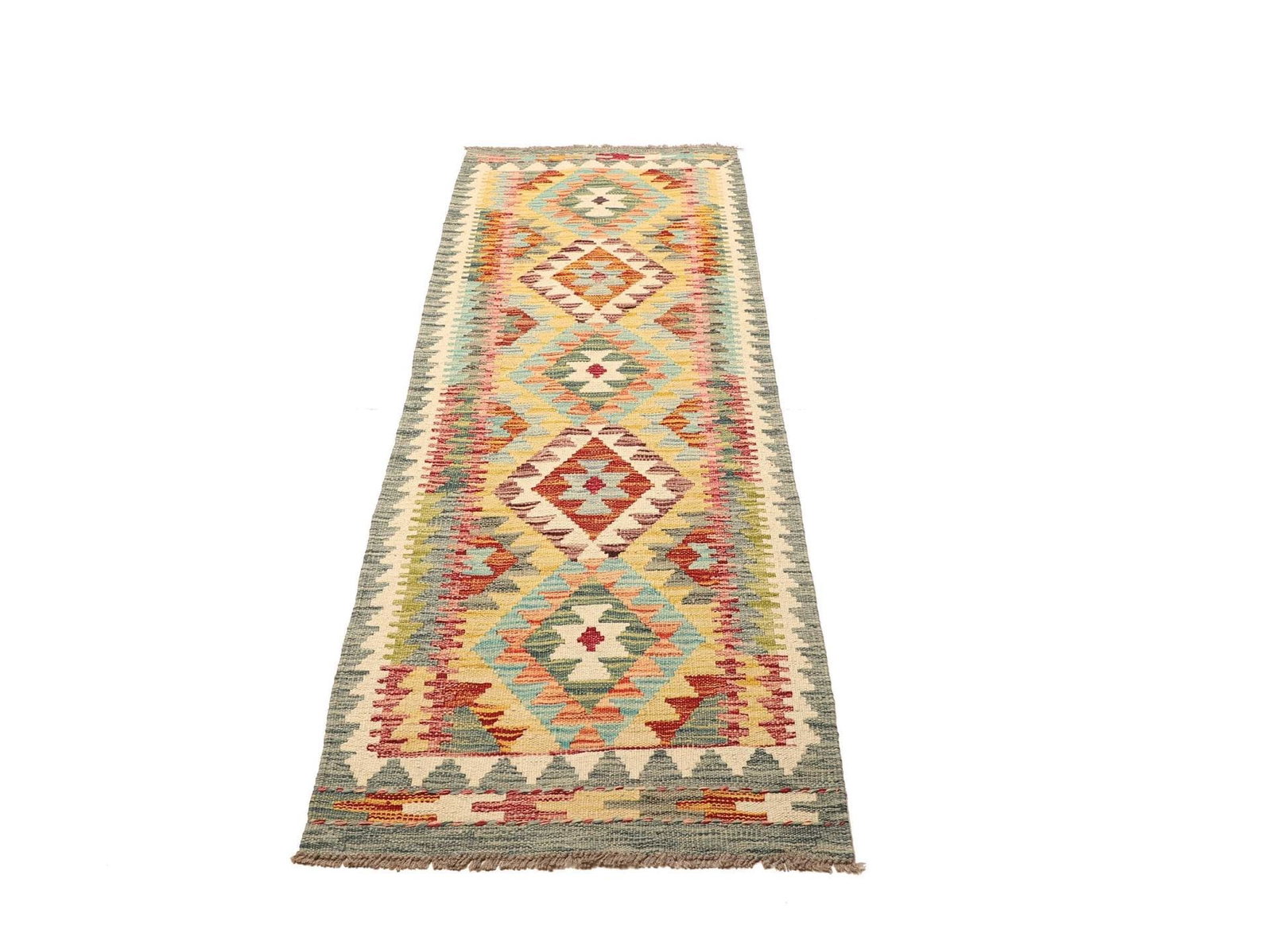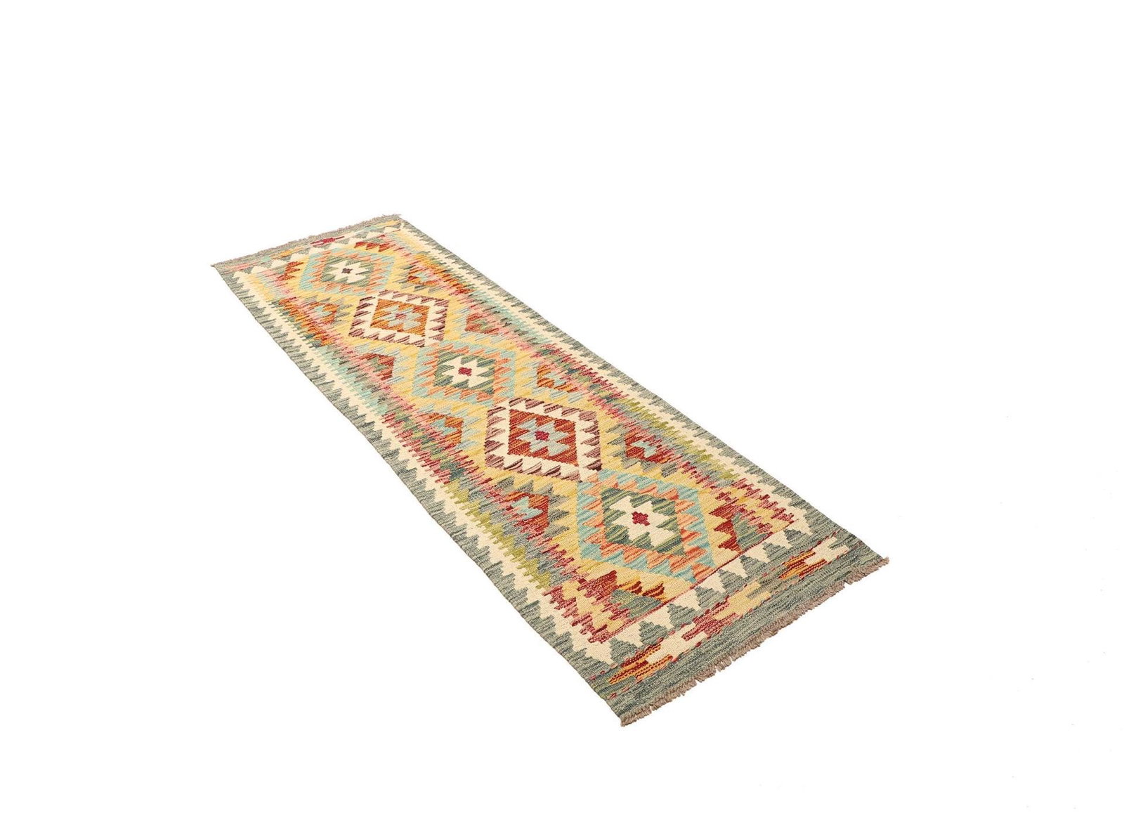 Kelim Teppich 65 x 189cm aus Schurwolle, handgewebt, rustikales Flair