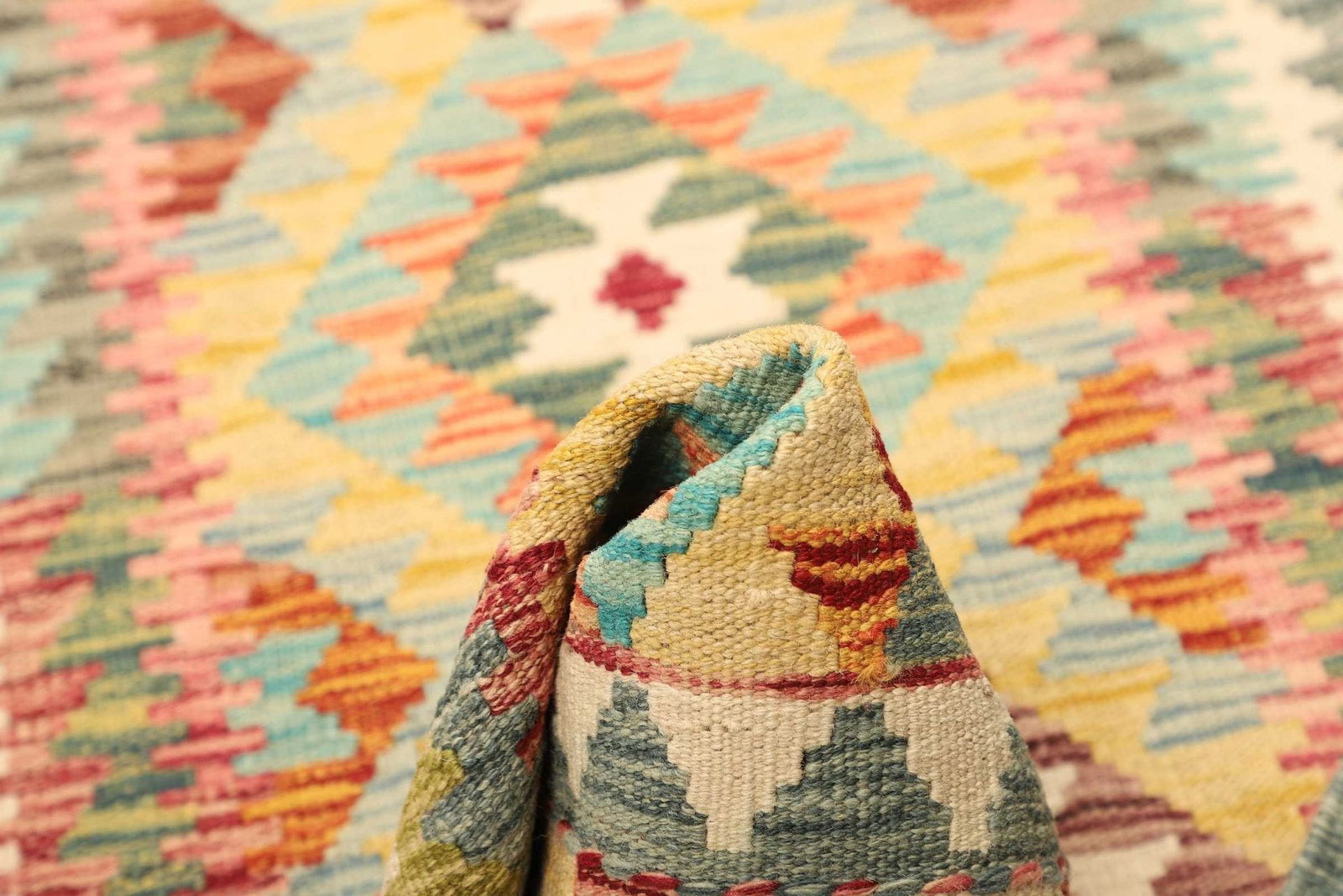 Zusätzlich sorgt der Teppich für eine akustische Dämpfung im Raum und trägt zur Verbesserung der Raumluftqualität bei, da Wolle natürliche Eigenschaften besitzt, die Staub und Allergene filtern. Dies macht den Kelim Teppich nicht nur zu einem Schmuckstück, sondern auch zu einer wertvollen Ergänzung für ein gesundes Wohnklima.