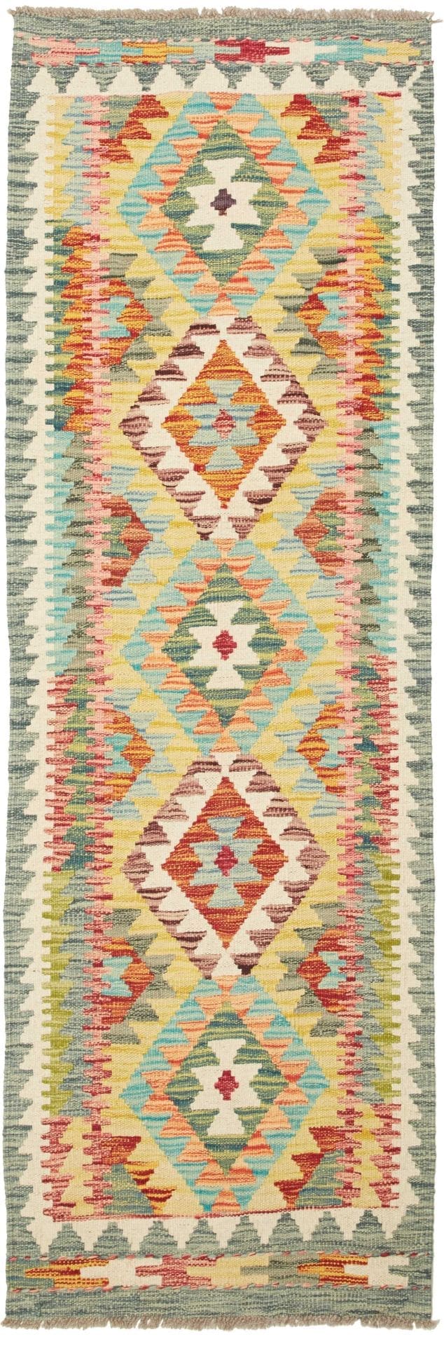 204$Ursprünglicher Preis war: 204$156$Aktueller Preis ist: 156$Kelim Teppich | Knotendichte: 200.000 Knoten/m² | Material: 100% Schurwolle (Flor) und 100% Baumwolle (Kette) | Größe: 65 x 189 cm | Herkunft: Pakistan | Zustand: Handgewebte Qualität | Rustikales Flair und vielseitig einsetzbar