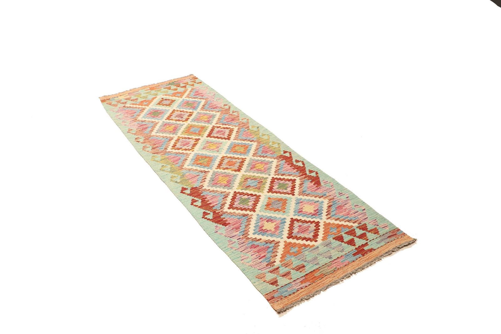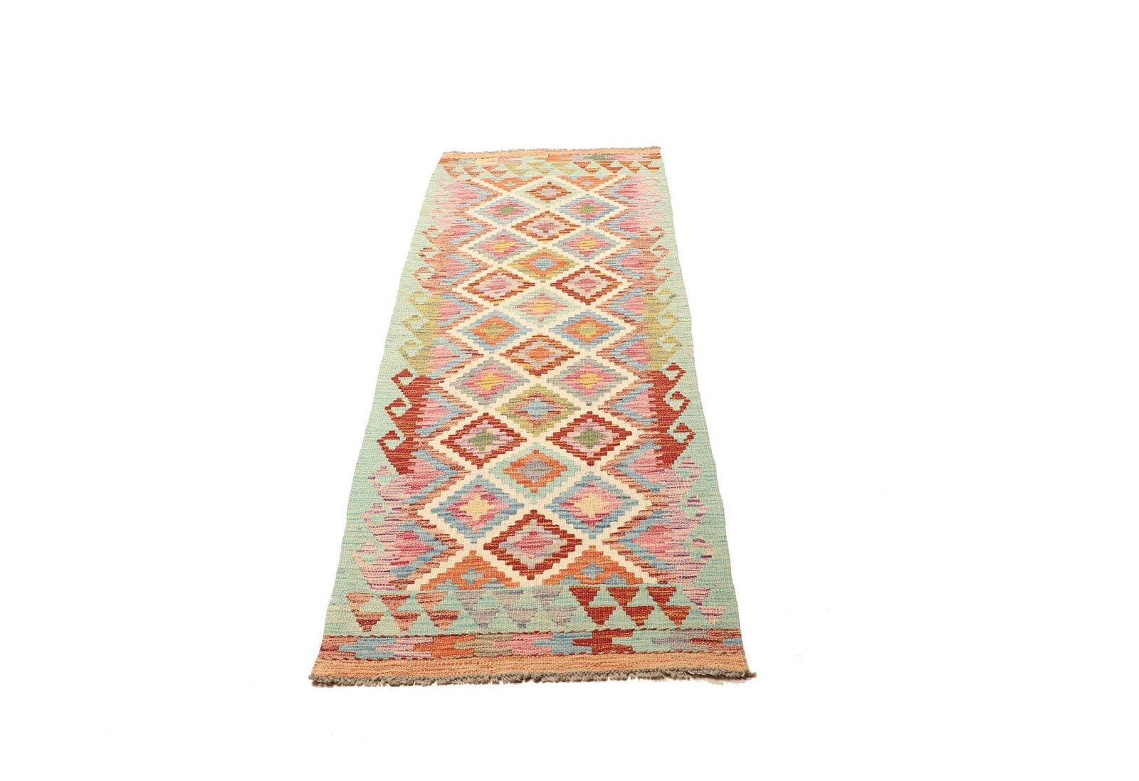 275$Ursprünglicher Preis war: 275$167$Aktueller Preis ist: 167$| Handgewebter Kelim aus Pakistan | Knotendichte: ca. 200.000 Knoten/m² | Florhöhe: ca. 5 mm | Material: 100% Schurwolle | Kette: 100% Baumwolle | Größe: 67 x 192 cm | Zustand: Neu | Herkunft: Pakistan