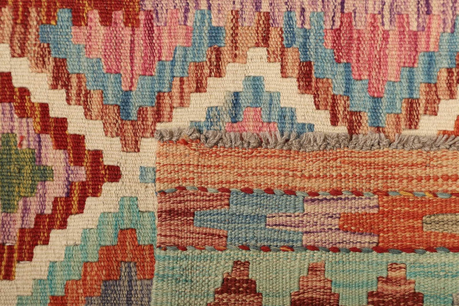 Das Design dieses Kelim Teppichs ist eine harmonische Kombination aus traditionellen und zeitgenössischen Elementen, die ihn zu einem echten Blickfang macht. Die geometrischen Muster und die harmonische Farbauswahl stehen in perfektem Einklang und verleihen jedem Raum eine rustikale Eleganz. Die Verwendung natürlicher Farbstoffe sorgt dafür, dass die Farben lebendig bleiben und nicht verblassen.