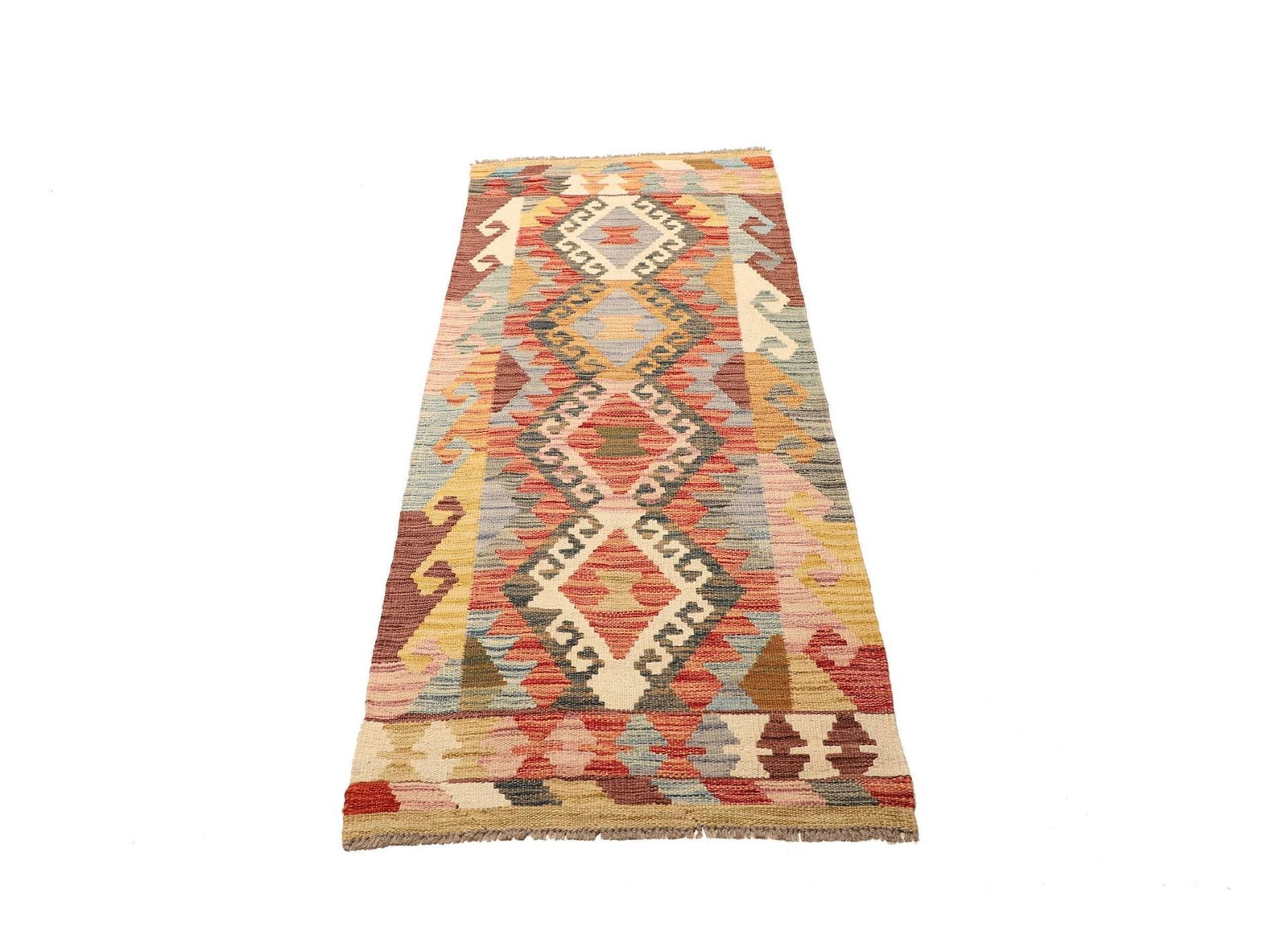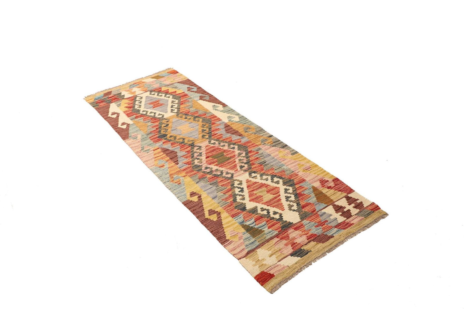 Kelim Teppich 68 x 184 cm aus Schurwolle, handgewebt, rustikal