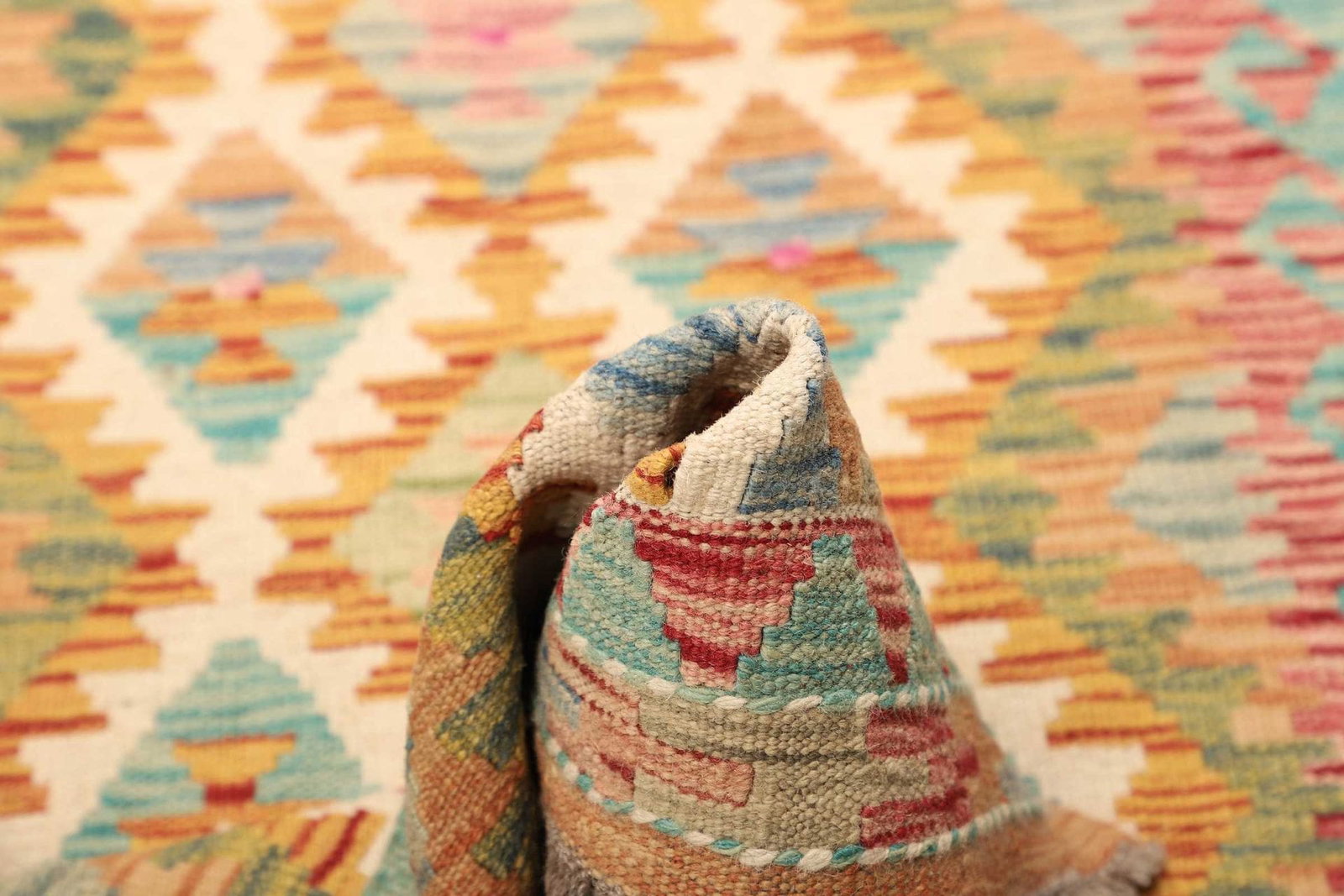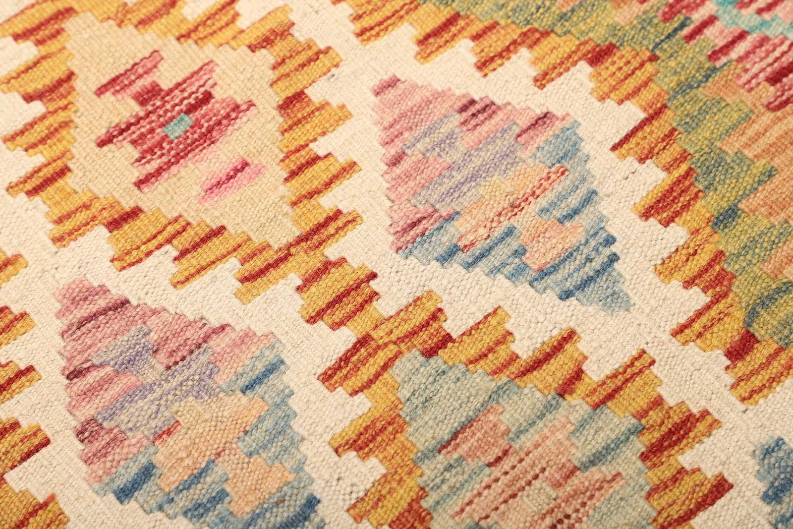 Der Kelim Teppich aus Schurwolle besticht durch seine ansprechenden Muster und Farben. Typisch für die Kelim-Technik sind geometrische Formen und farblich harmonische Arrangements, die jedem Raum eine lebendige Ausstrahlung verleihen. Die Verwendung von natürlichen Farbstoffen sorgt dafür, dass die Farben lebendig bleiben und den Teppich über Jahre hinweg frisch und ansprechend aussehen lassen.