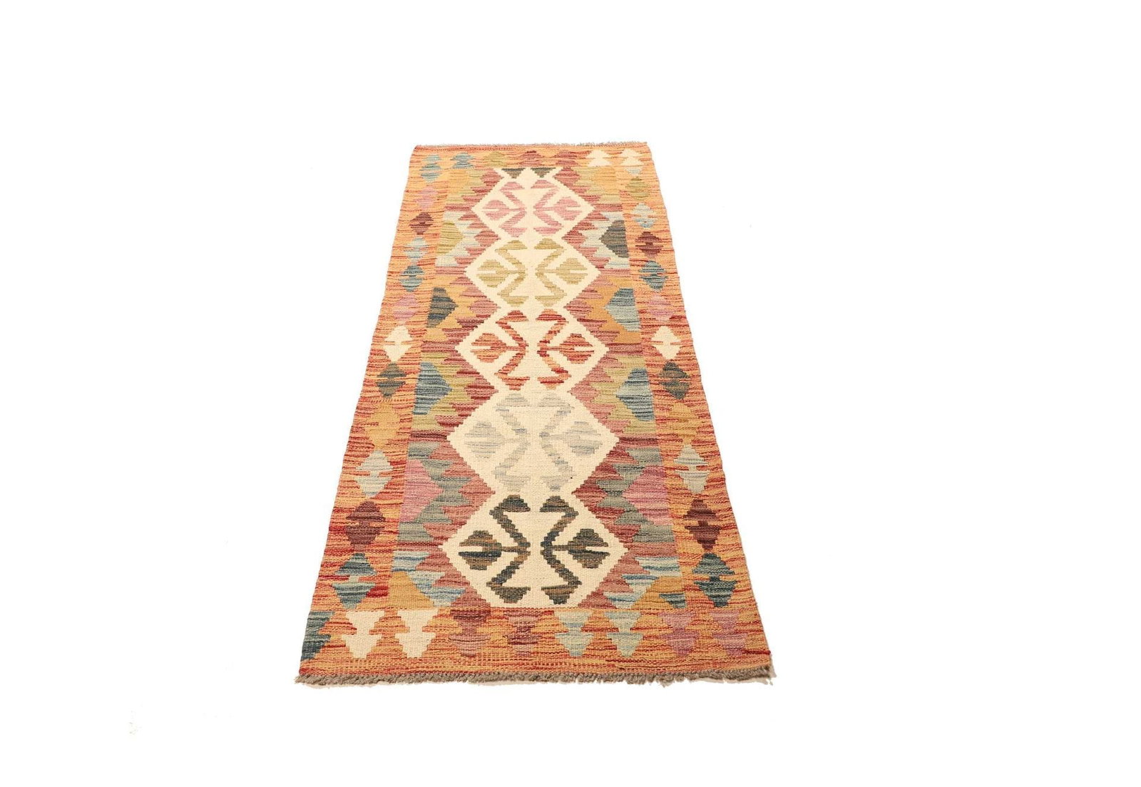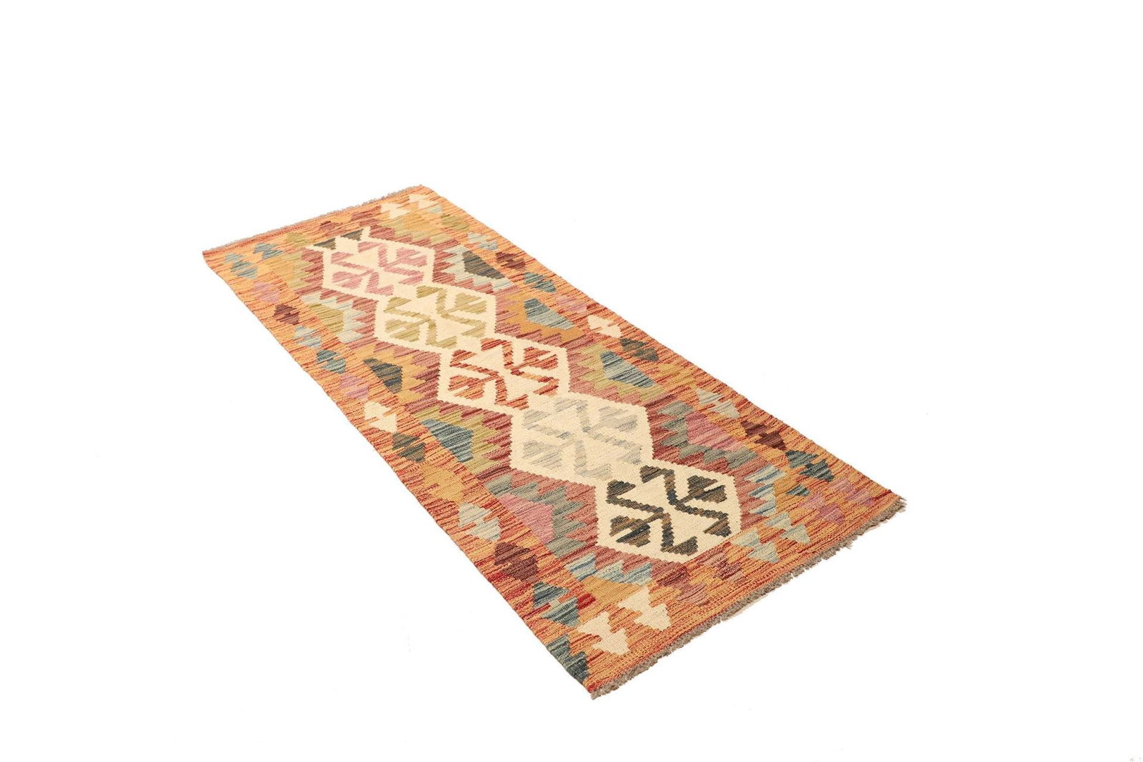 Handgewebter Kelim | Herkunft: Pakistan | Knotendichte: ca. 200.000 Knoten/m² | Größe: 69 x 170 cm | Flor: 100% Schurwolle | Kette: 100% Baumwolle | Höhe: ca. 5 mm | Rustikales Flair für moderne Wohnräume