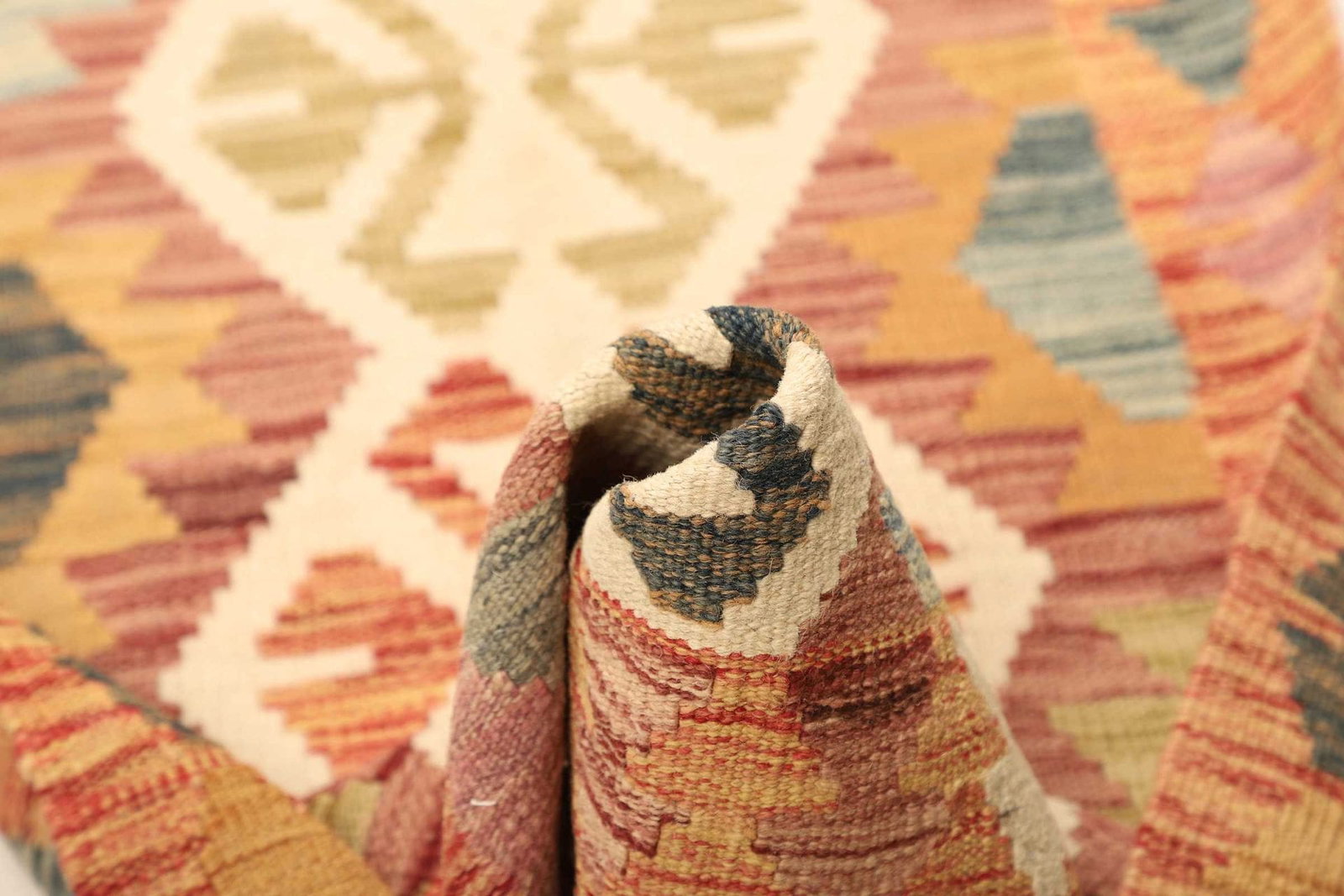 Die handgewebte Technik des Kelims garantiert nicht nur eine hohe Qualität, sondern auch den Erhalt traditioneller Handwerkskunst. Jede Faser wird sorgfältig ausgewählt und von erfahrenen Kunsthandwerkern verarbeitet, die ihre Knüpfkunst über Generationen hinweg verfeinert haben. Das Ergebnis ist ein Teppich, der sowohl optisch als auch haptisch überzeugt.