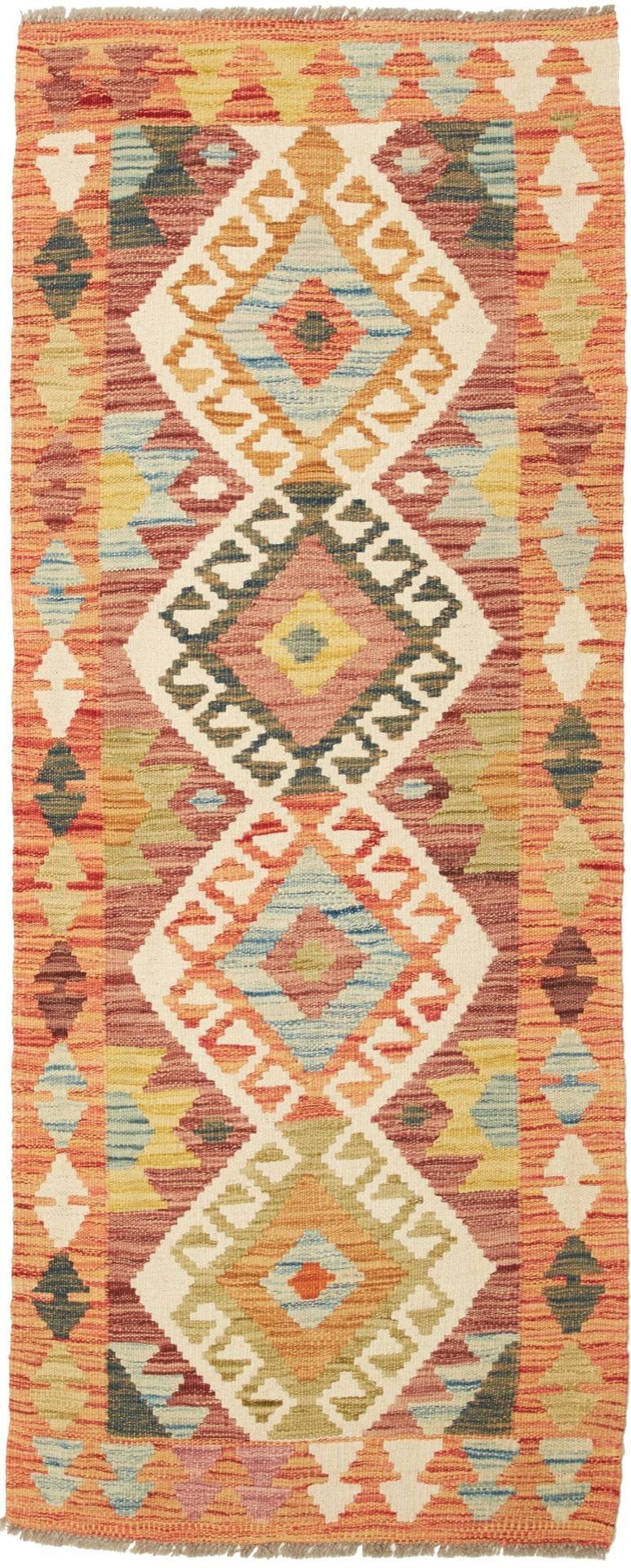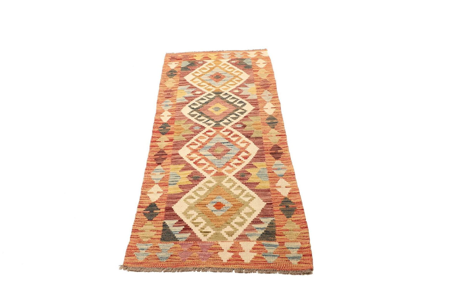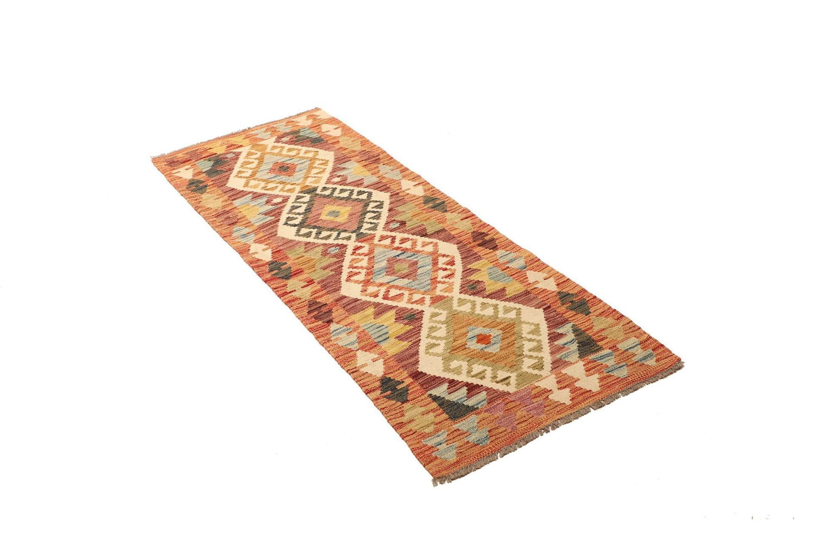 Kelim Teppich 69 x 175cm aus Schurwolle, handgewebt, rustikal