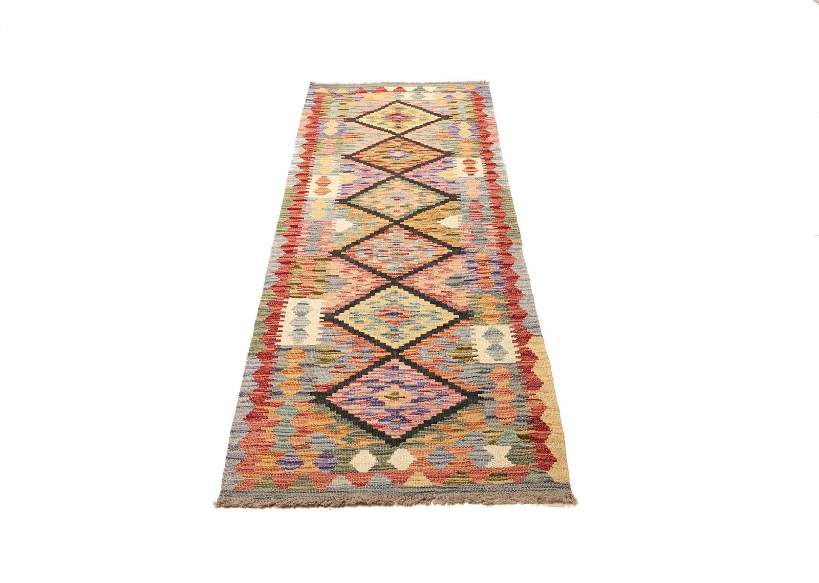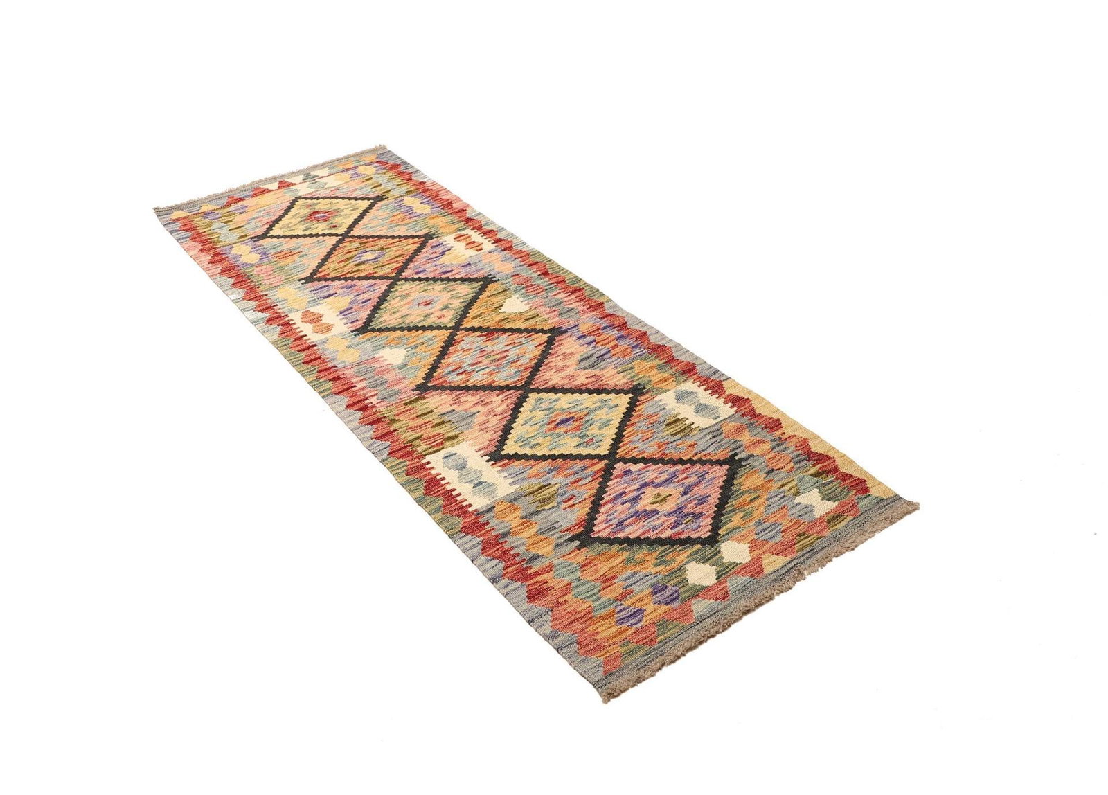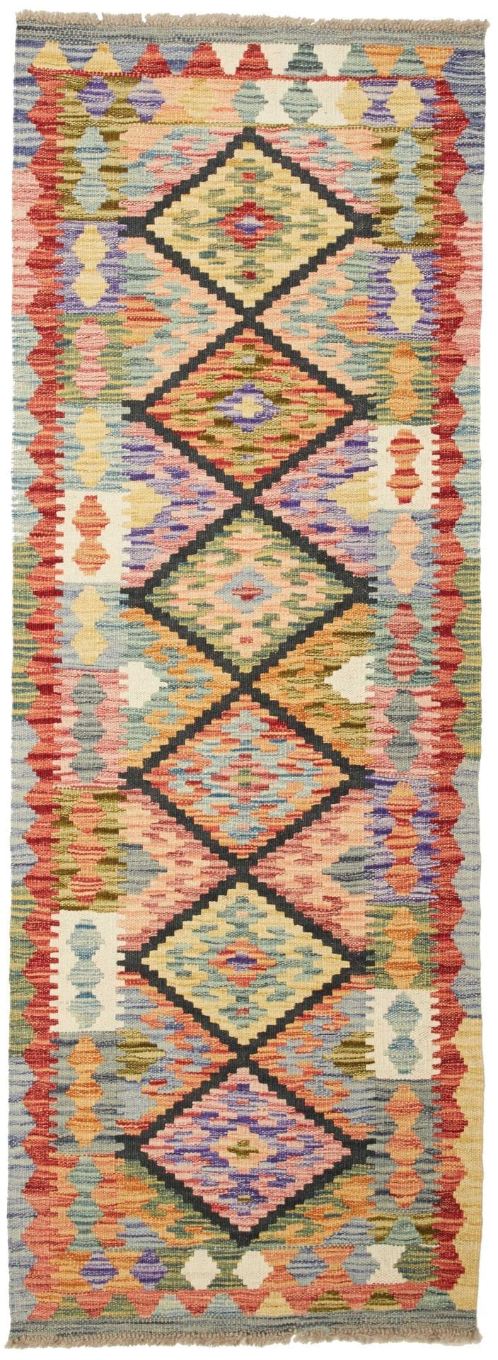 Kelim Teppich 70 x 186 cm aus Schurwolle, handgewebt, rustikal