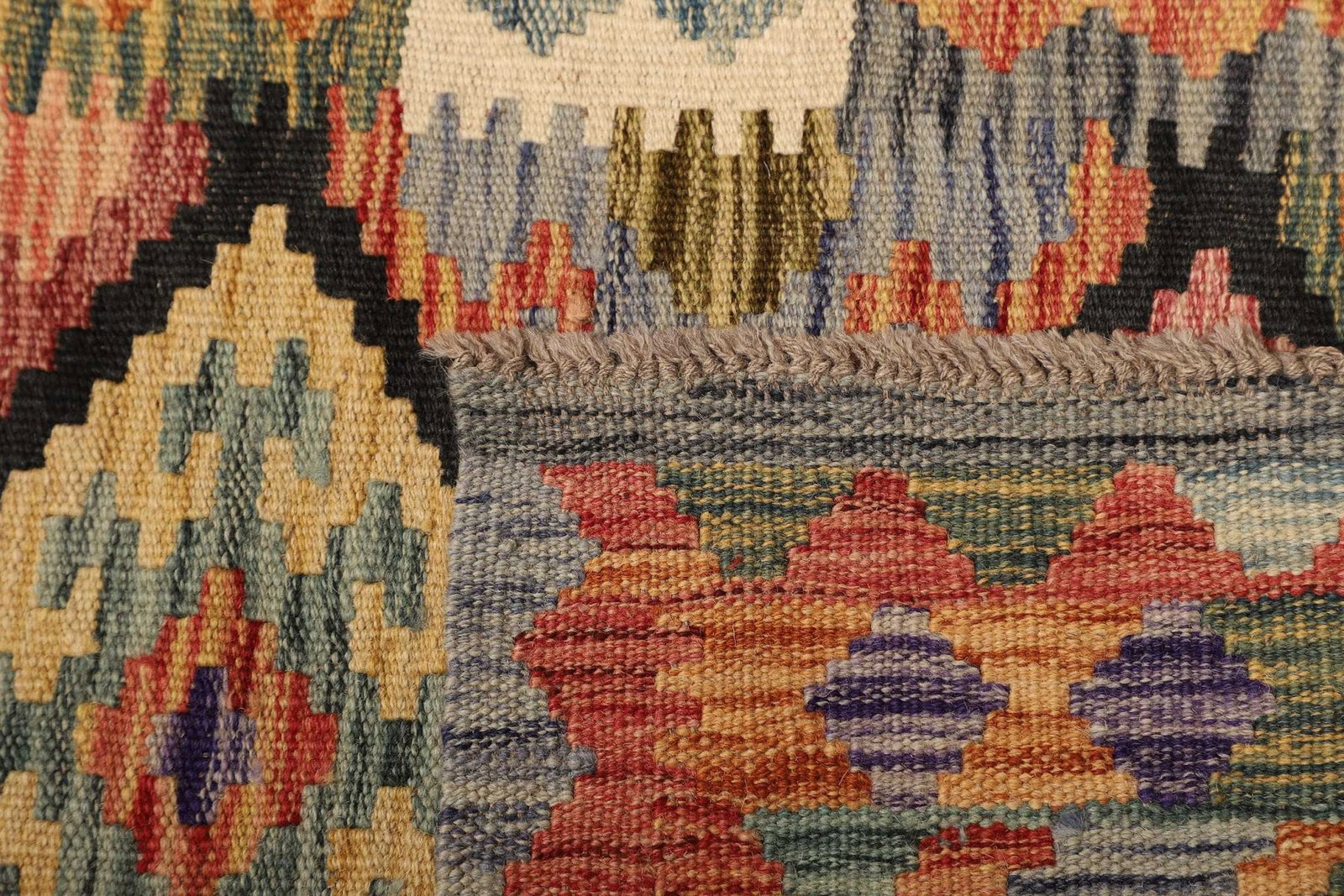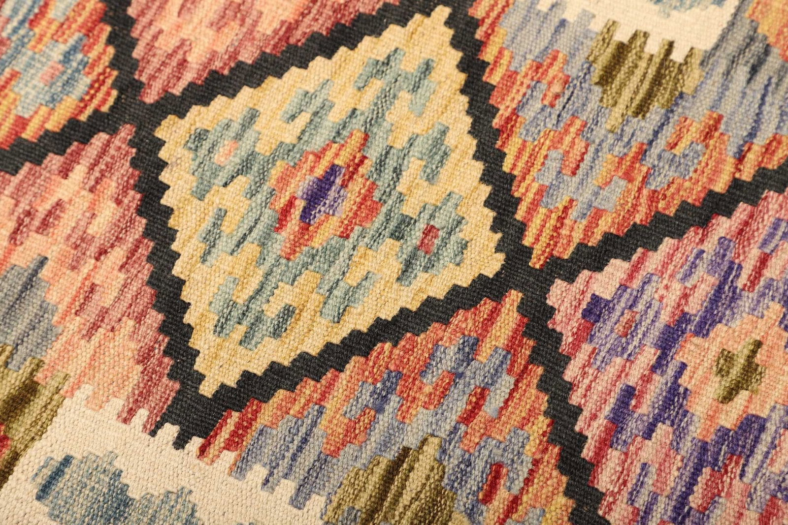 Ein hochwertiger Kelim Teppich zeichnet sich durch gleichmäßige Muster, eine dichte und gleichmäßige Webart sowie lebendige, natürliche Farben aus. Achten Sie darauf, dass der Teppich aus 100% Schurwolle besteht, denn dies garantiert sowohl Langlebigkeit als auch ein angenehmes Gefühl unter den Füßen.