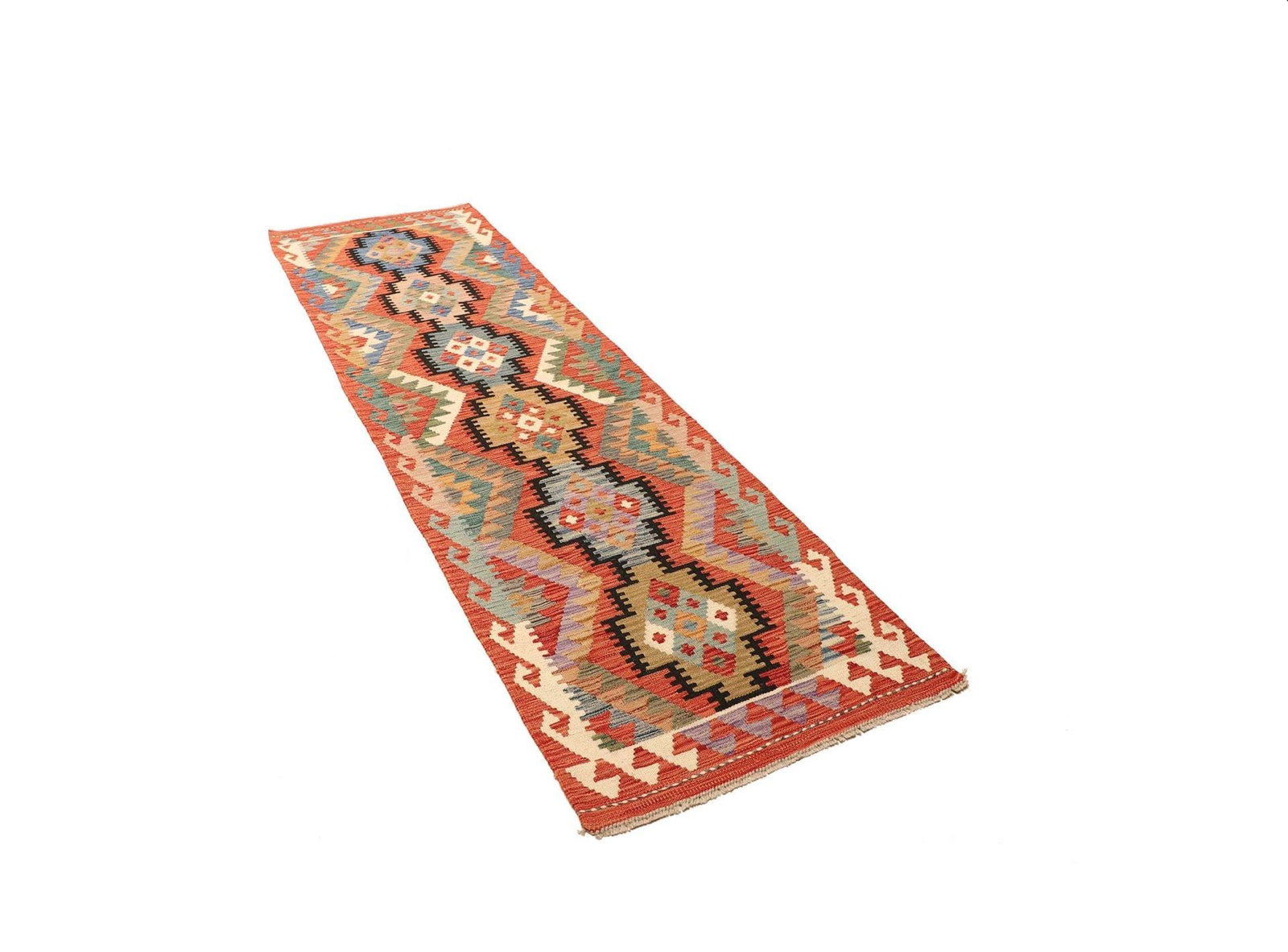 Kelim Teppich | Knotendichte: ca. 200.000 Knoten/m² | Material: 100% Schurwolle | Größe: 75 x 243 cm | Zustand: Handgewebte Qualität | Herkunft: Pakistan | Florhöhe: ca. 5 mm | Kette: 100% Baumwolle