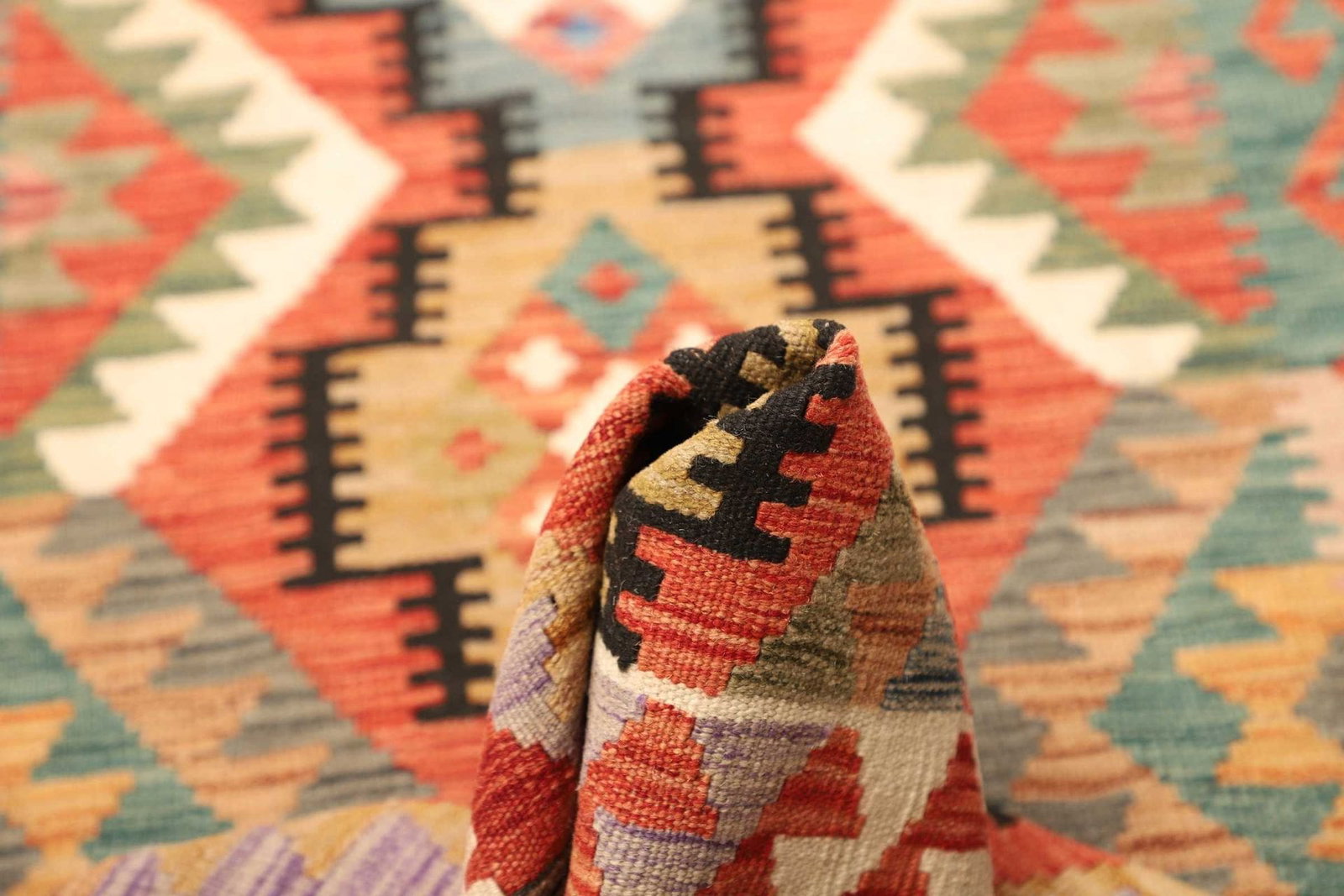 Dieser handgewebte Kelim Teppich stellt eine wertvolle Investition dar, die zur Schaffung eines behaglichen zu Hause beiträgt und gleichzeitig ein Stück Geschichte und Tradition in sich trägt.