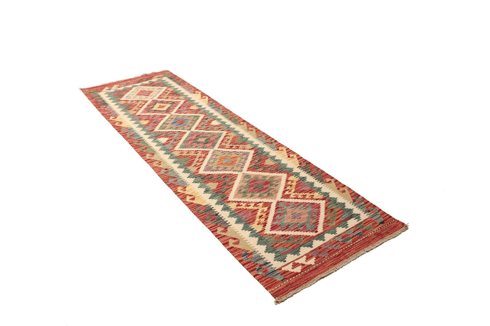 Kelim Teppich | Knotendichte: ca. 200.000 Knoten/m² | Material: 100% Schurwolle und 100% Baumwolle | Größe: 79×243 cm | Herkunft: Pakistan | Zustand: Handgewebte Qualität mit rustikalem Flair