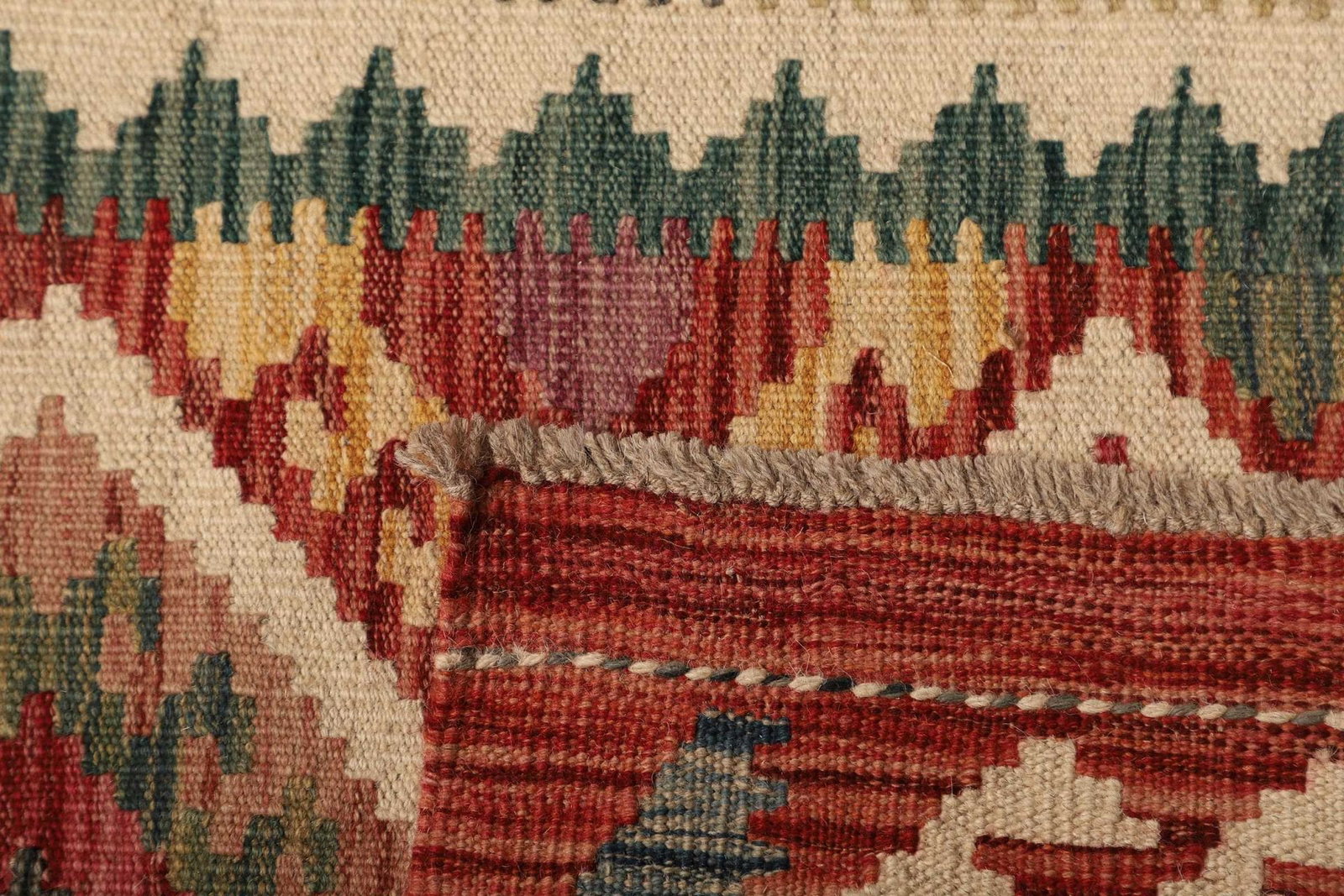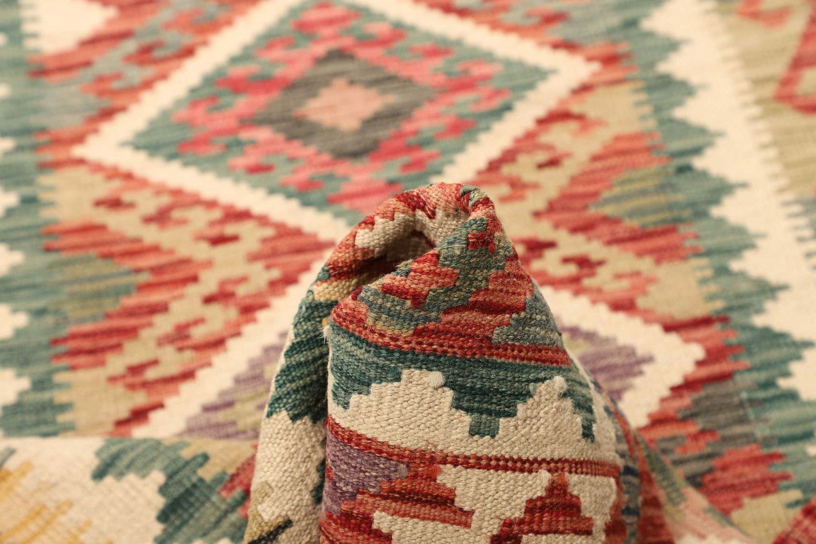 Der Kelim Teppich wird aus einer hochwertigen Mischungen von Wolle und Baumwolle gefertigt. Die Wolle sorgt für eine natürliche Isolierung, während die Baumwolle dem Teppich Strapazierfähigkeit und Robustheit verleiht. Dieses Zusammenspiel der Materialien ermöglicht nicht nur ein angenehmes Laufgefühl, sondern auch eine hohe Widerstandsfähigkeit gegenüber alltäglichen Abnutzungen.