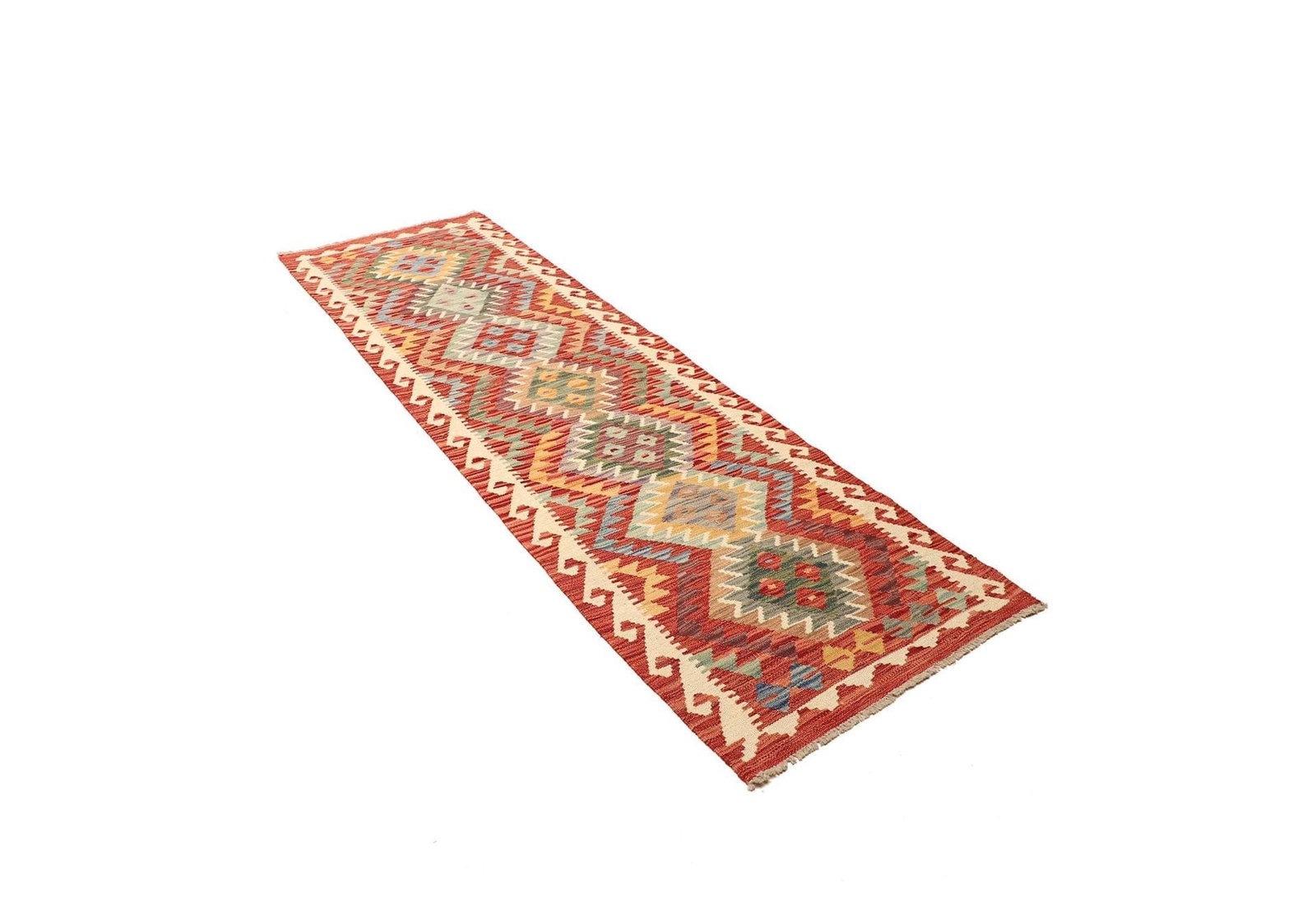 Kelim Teppich | Knotendichte: ca. 200.000 Knoten/m² | Material: 100% Schurwolle und 100% Baumwolle | Größe: 80×244 cm | In gutem Zustand | Herkunft: Pakistan | Handgewebte Qualität mit rustikalem Flair