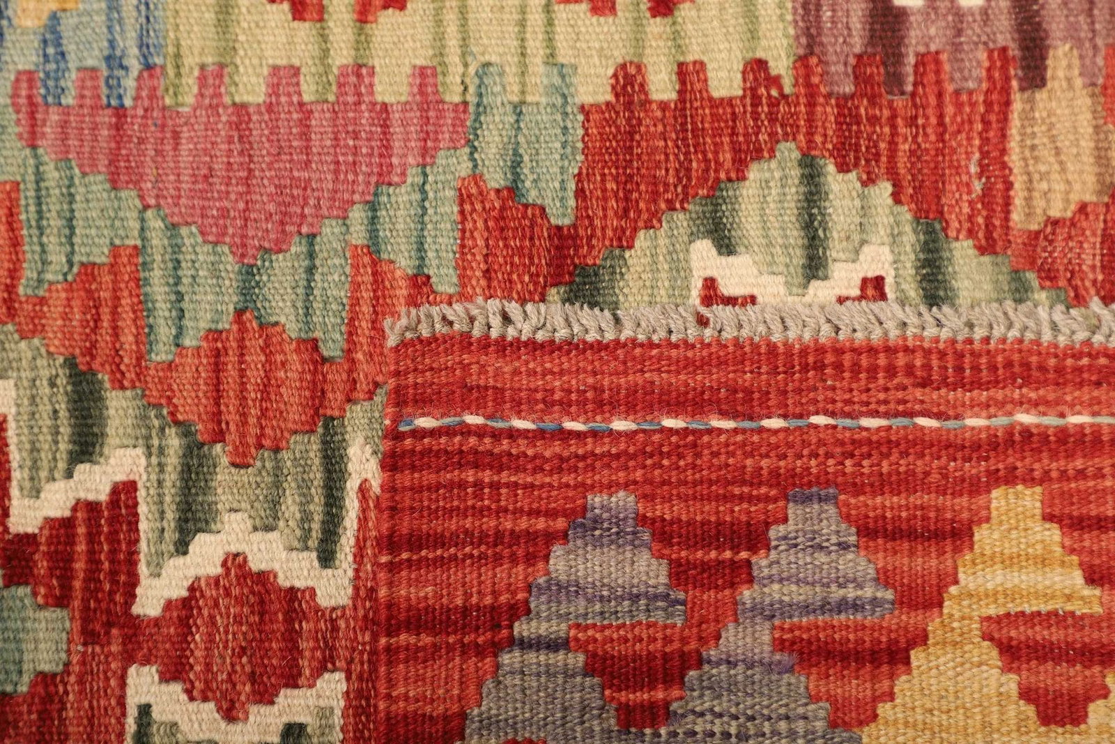 Ein hervorstechendes Merkmal dieses handgewebten Kelim Teppichs ist seine Vielseitigkeit. Er eignet sich hervorragend für Wohnzimmer, Schlafzimmer oder Flure und sorgt überall für ein warmes, einladendes Ambiente. Dank seiner handwerklichen Verarbeitung und der Verwendung von natürlichen Materialien erhält dieser Teppich zusätzlich zu seiner Ästhetik eine besondere Strapazierfähigkeit. Der Teppich ist somit nicht nur schön, sondern auch funktional und langlebig.