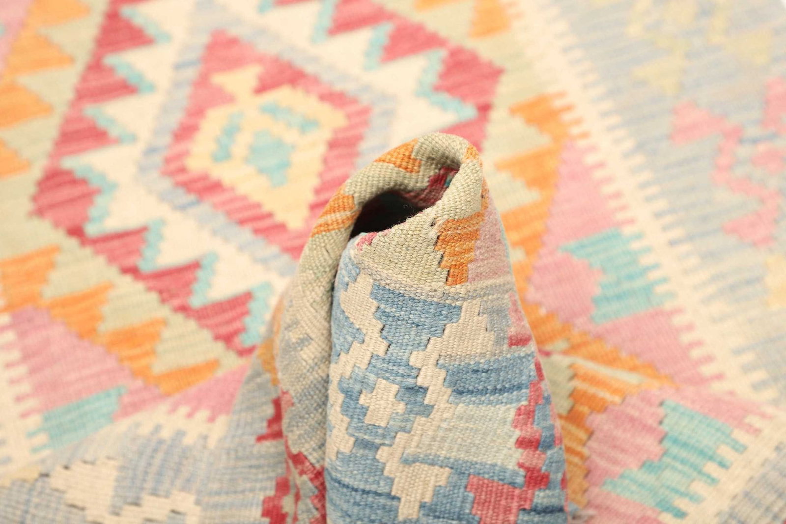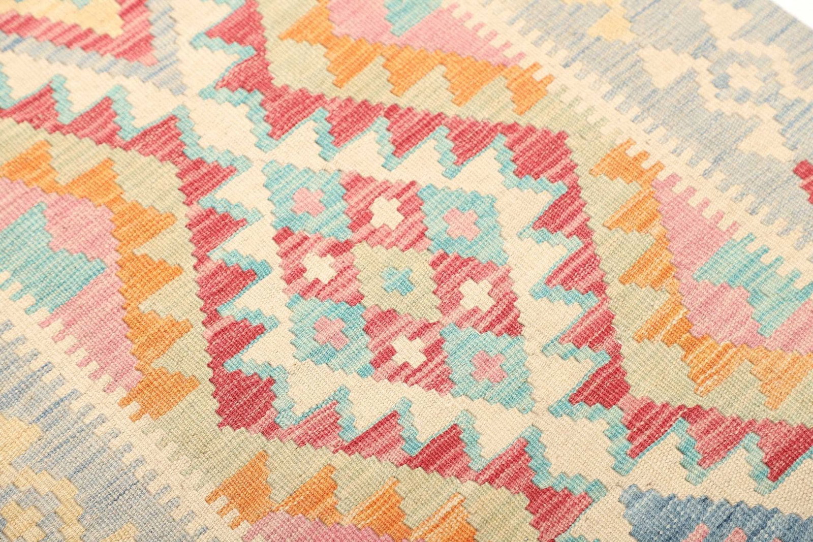 Neben seiner ästhetischen Anziehungskraft bringt der handgewebte Kelim Teppich auch praktische Vorteile mit sich. Die Verwendung von Wolle sorgt für eine natürliche Temperaturregulierung, sodass der Teppich sowohl im Sommer als auch im Winter angenehm ist. Zudem ist der Teppich pflegeleicht und behält auch nach langer Nutzung seine Farben und Struktur.