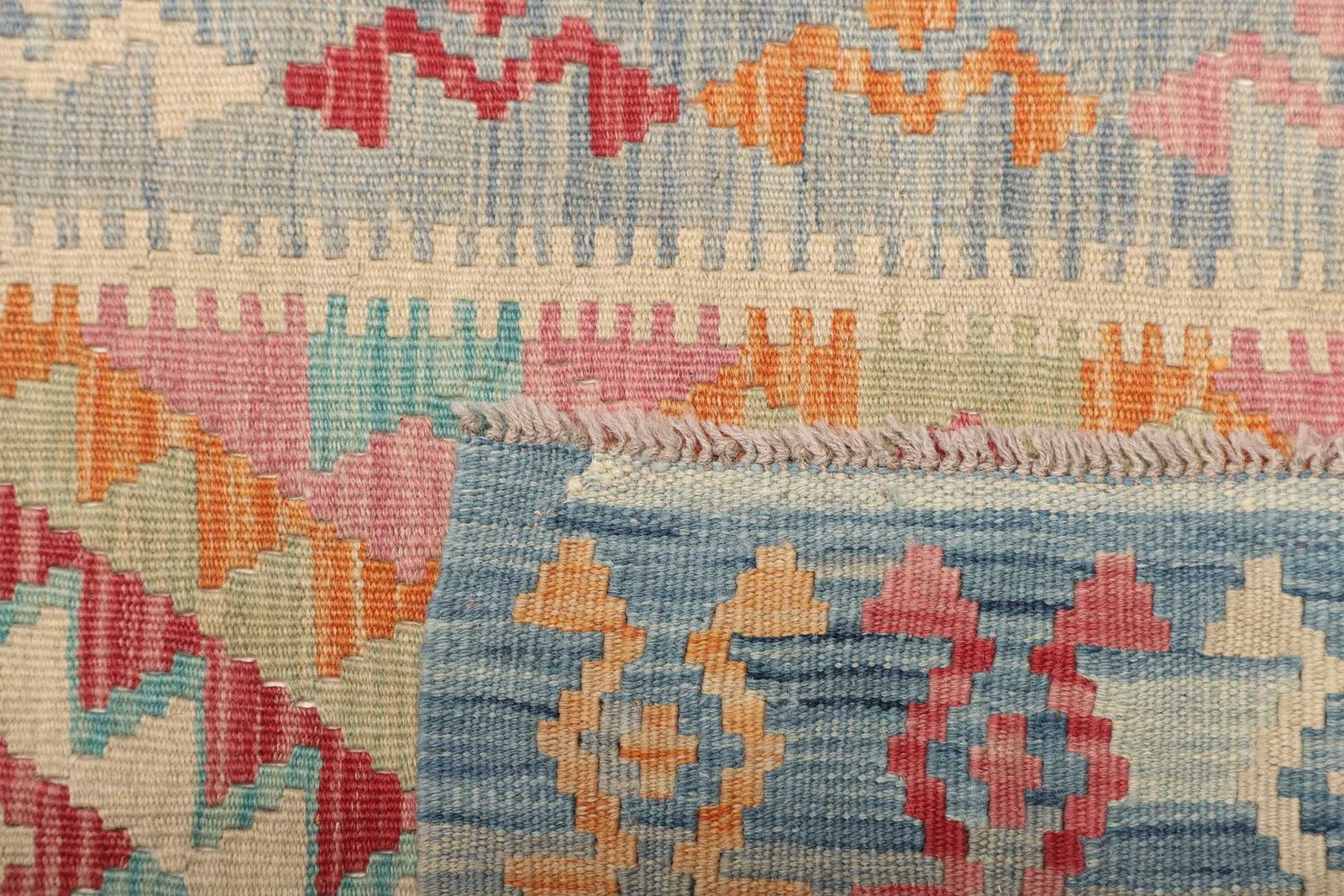 971$ In den WarenkorbKelim 215 x 144 cm – Handgewebt mit identischem Muster auf Vorder- und Rückseite – Orientteppich