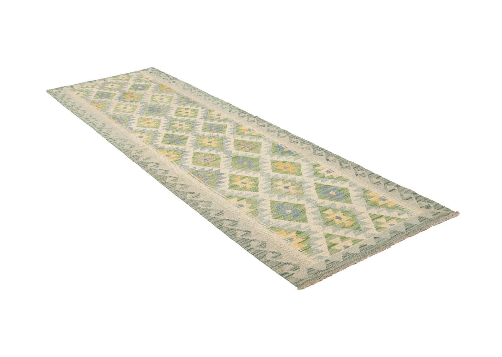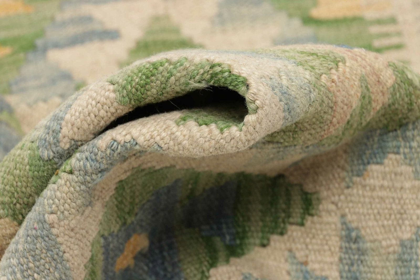 Die Knotendichte dieses handgewebten Kunstwerks bringt die atemberaubenden Muster und Designs optimal zur Geltung. Jede einzelne Faser wird mit Bedacht ausgewählt und in einem aufwendigen Prozess verarbeitet, um ein einmaliges Produkt zu schaffen, das sowohl in traditionellen als auch in modernen Einrichtungen eine gute Figur macht. Die Technik des Kelim-Webens sorgt dafür, dass der Teppich besonders flach und leicht ist, ohne dabei an Strapazierfähigkeit einzubüßen.