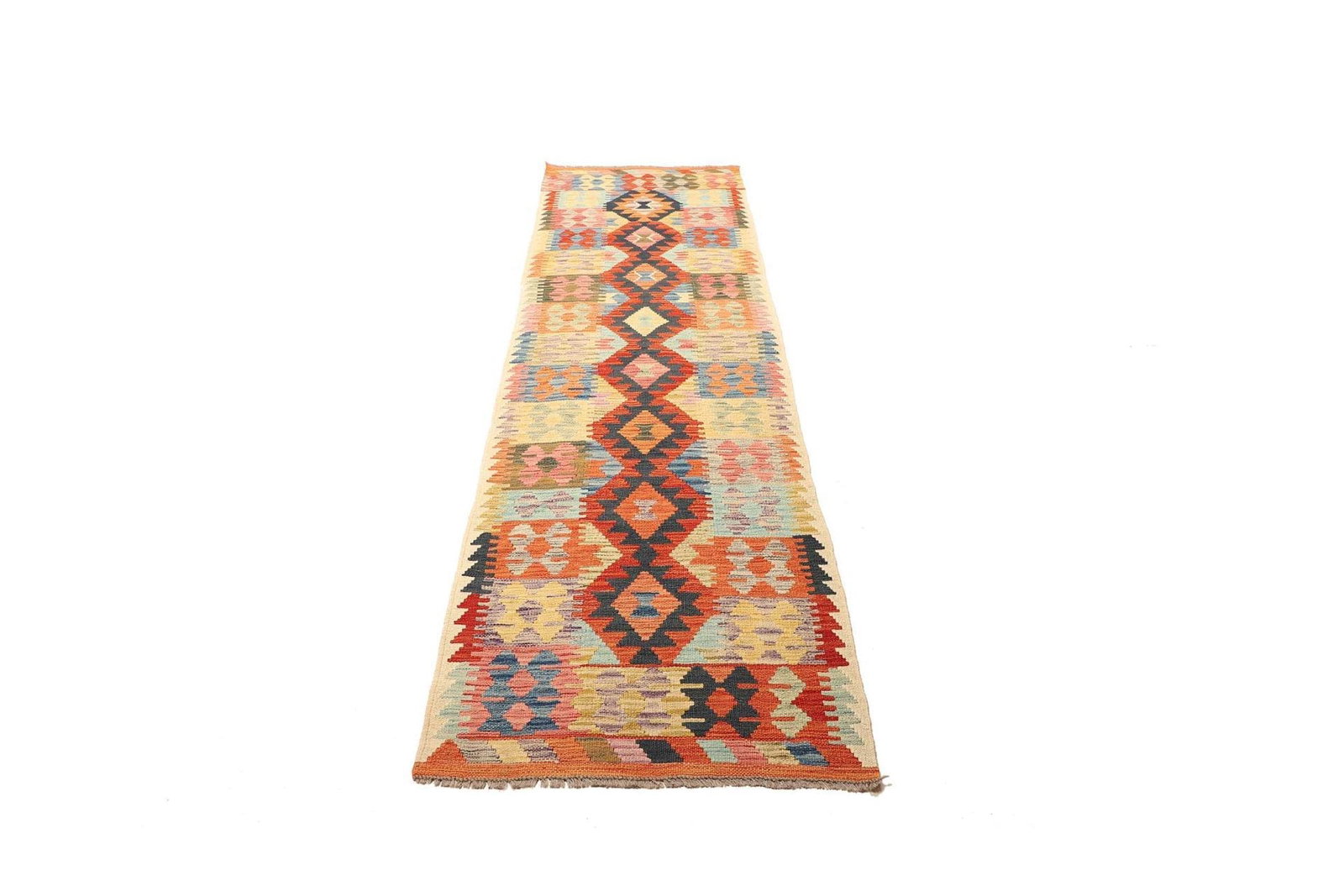 Kelim Teppich 81 x 286 cm, handgewebt, rustikales Flair, Wolle