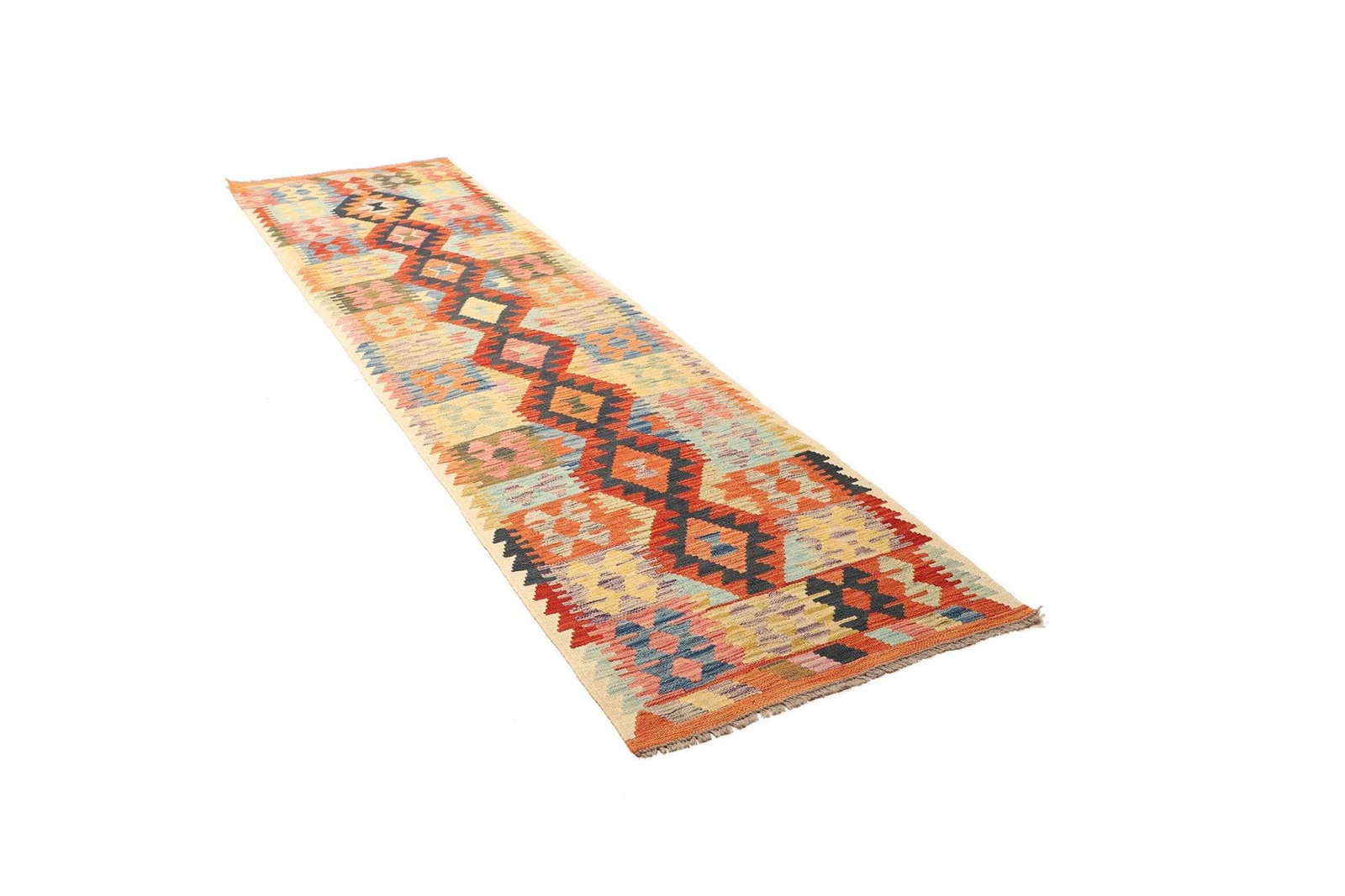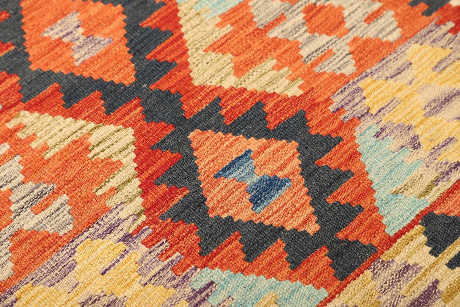 Kelim Teppich, handgewebt, rustikales Flair, Wolle