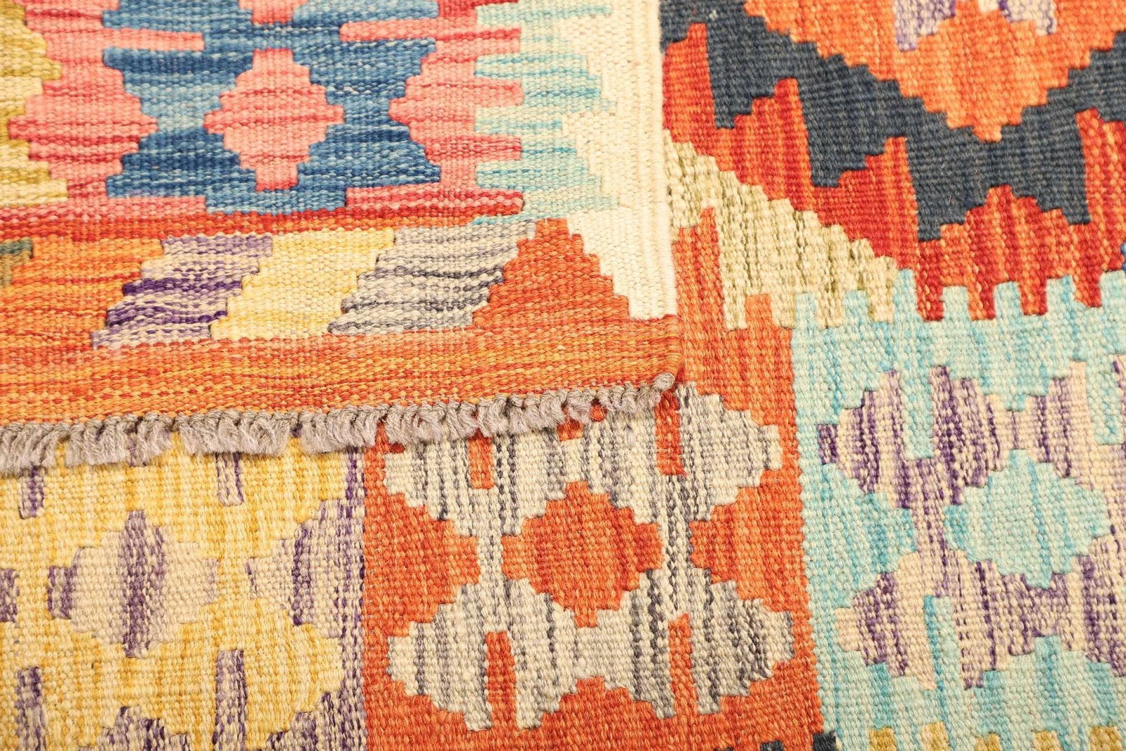 Ein einzigartiges Merkmal unseres handgewebten Kelim Teppichs ist die Kombination aus rustikalem Flair und moderner Eleganz. Diese Teppiche sind nicht nur ästhetisch ansprechend, sondern auch funktionell. Sie sind leicht, was sie ideal für die saisonale Umgestaltung von Innenräumen macht. Zudem sind sie pflegeleicht und können in der Regel in der Waschmaschine gereinigt werden, was sie besonders benutzerfreundlich macht.