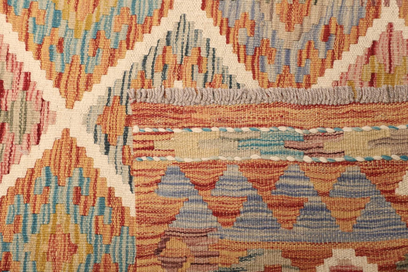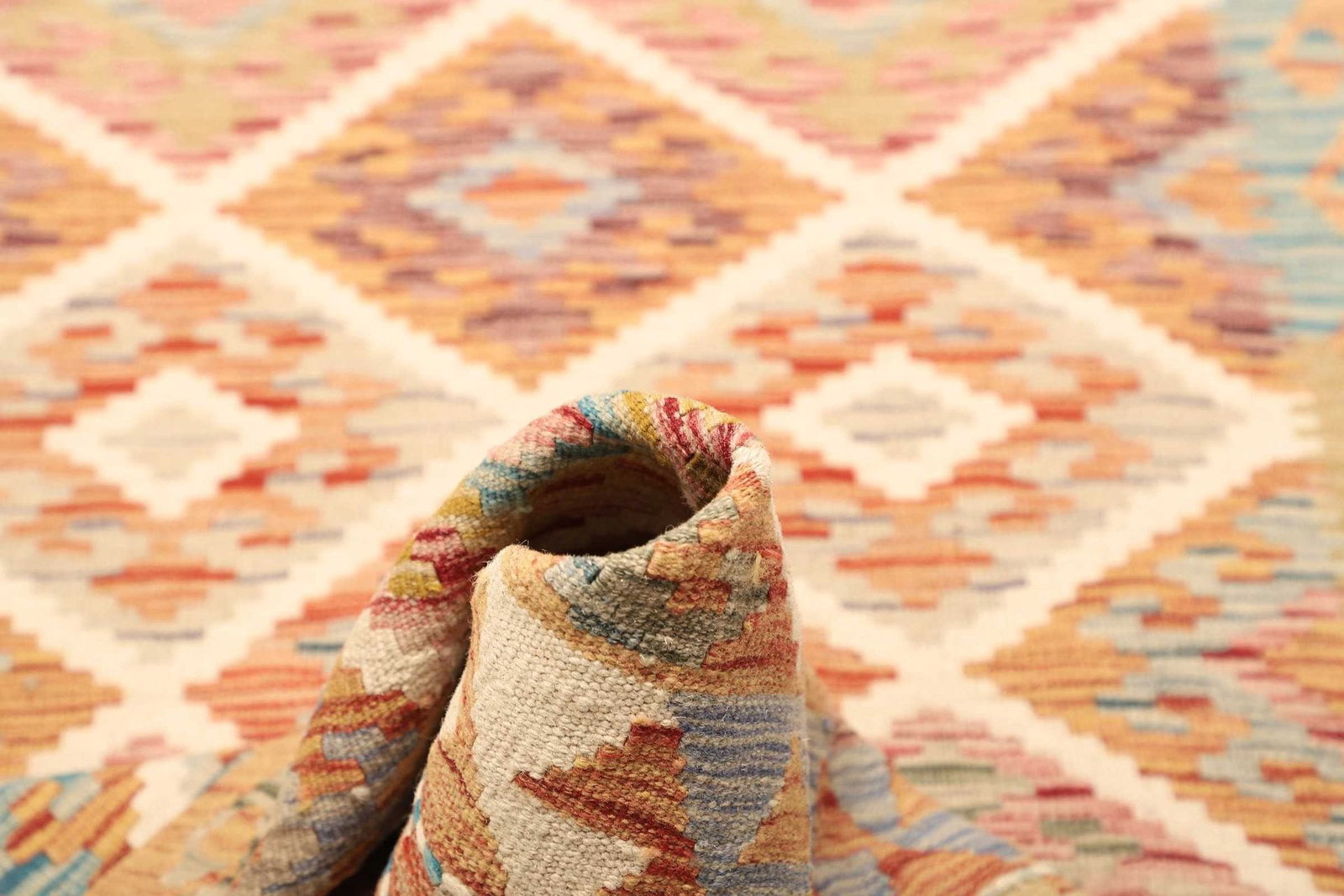 Das Design dieses Kelim Teppichs besticht durch eine harmonische Farbenkombination und geometrische Muster, die typisch für die handgewebte Technik sind. Die Verwendung verschiedener Farbtöne schafft interessante Kontraste und macht jeden Teppich zu einem echten Blickfang. Die Muster können von kulturellen Symbolen bis hin zu simplen, aber eleganten Designs reichen, die sowohl in modernen als auch in klassischen Wohnräumen hervorragend zur Geltung kommen.
