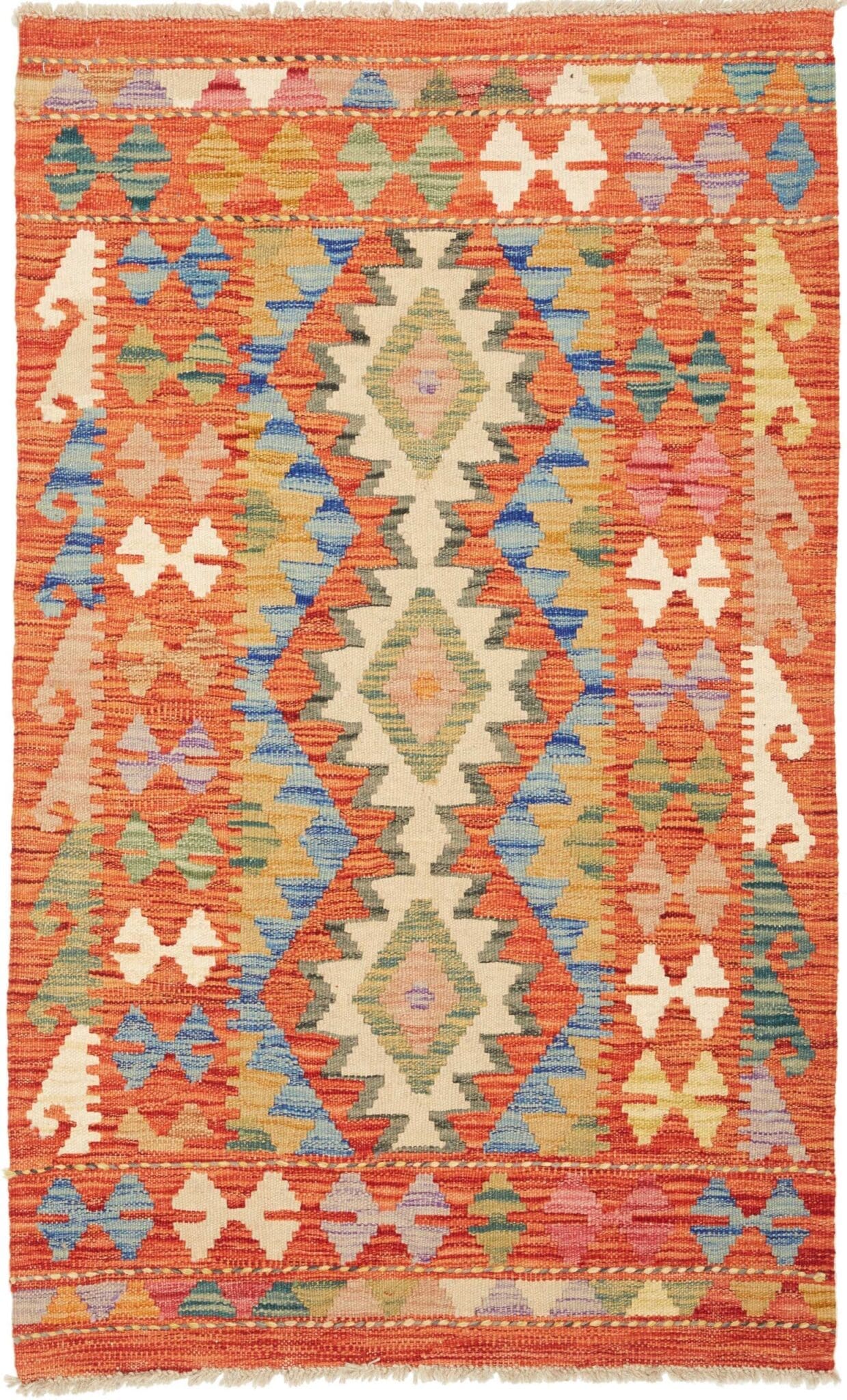 Kelim 206 x 145 cm – Gewebt mit identischen Mustern auf Vorder- und Rückseite, ideal als Wandbehang, handgewebt, Orientteppich