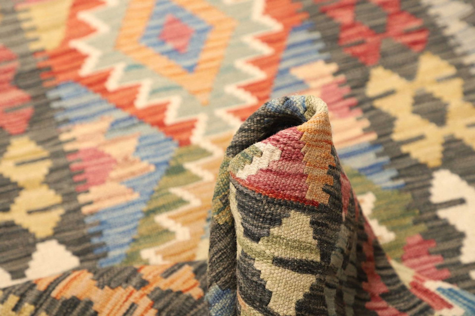 Die Verwendung von reiner Wolle macht diesen Teppich besonders hochwertig. Wolle ist nicht nur für ihre Weichheit bekannt, sondern auch für ihre isolierenden Eigenschaften, die für ein angenehmes Raumklima sorgen. Handgewebte Teppiche aus Wolle sind zudem pflegeleicht, farbecht und behalten auch nach Jahren noch ihre Form und Farbenpracht. Die sorgfältige und präzise Verarbeitung garantiert, dass dieser Kelim auch höchsten Ansprüchen gerecht wird.