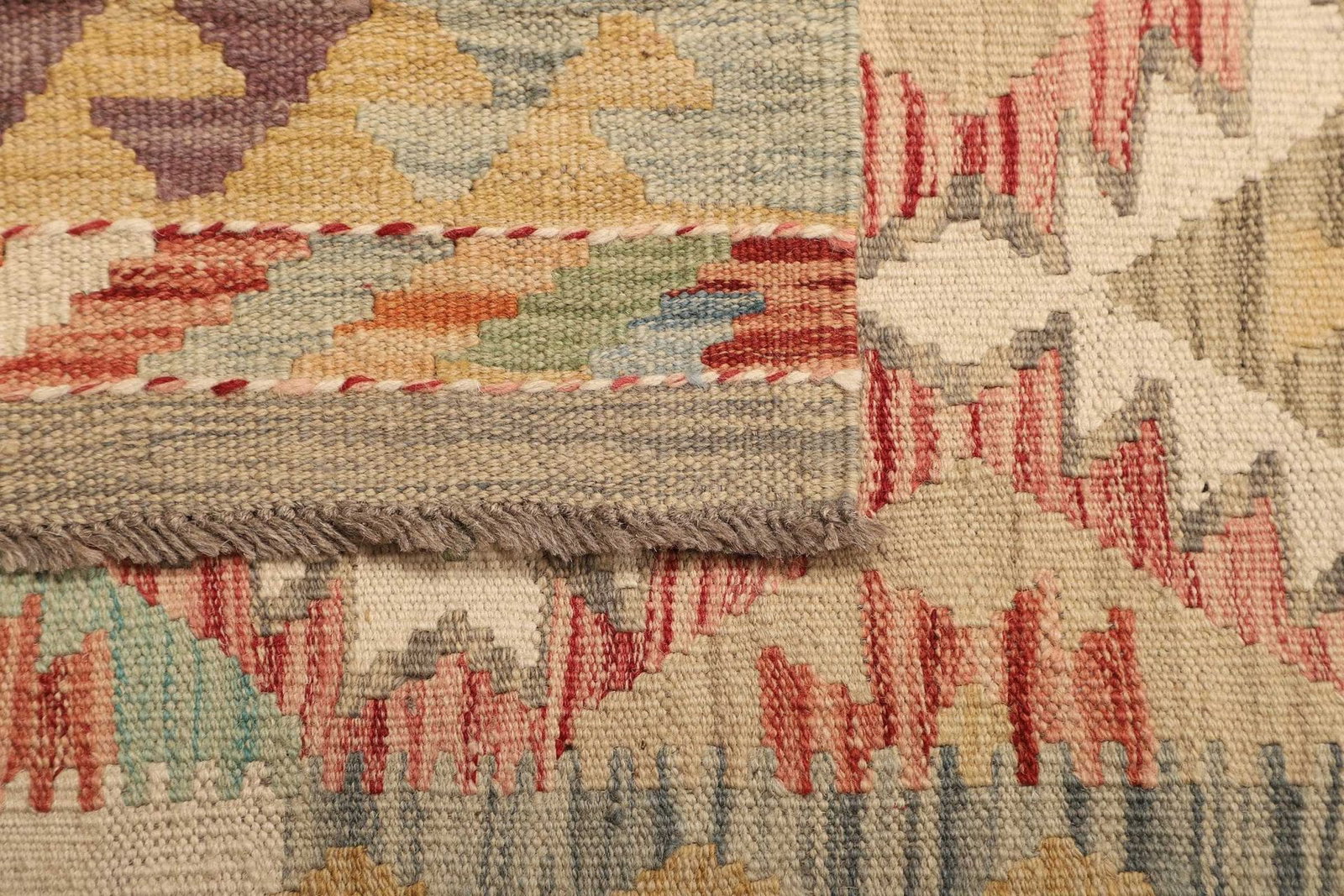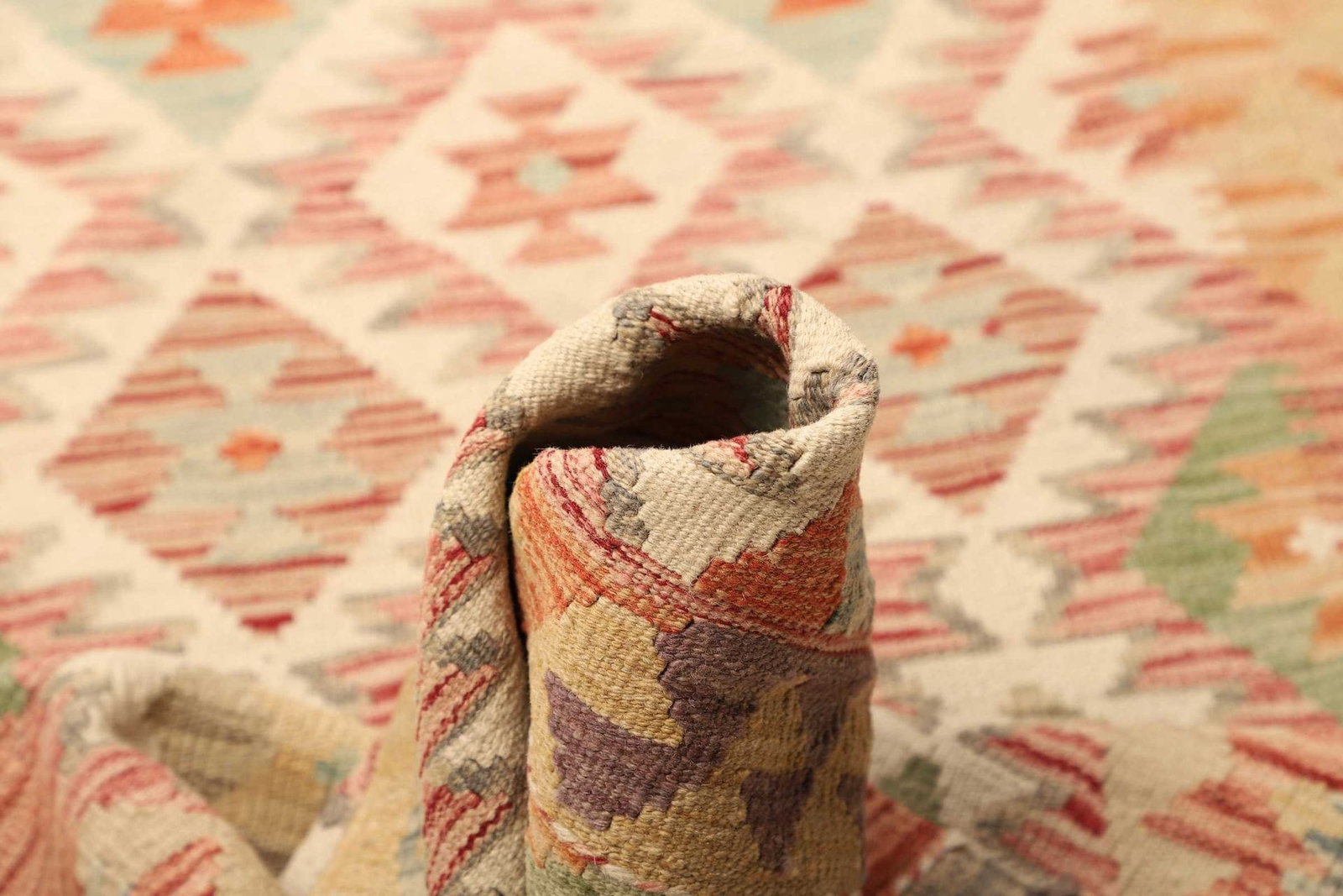 Die Kombination aus rustikalem Design, hochwertiger Verarbeitung und kultureller Bedeutung macht diesen Kelim Teppich zu einer beeindruckenden Bereicherung für jedes Zuhause. Sehen Sie diesen Teppich nicht nur als Wohnaccessoire, sondern auch als ein Stück Kunst, das Geschichte und Tradition vereint.