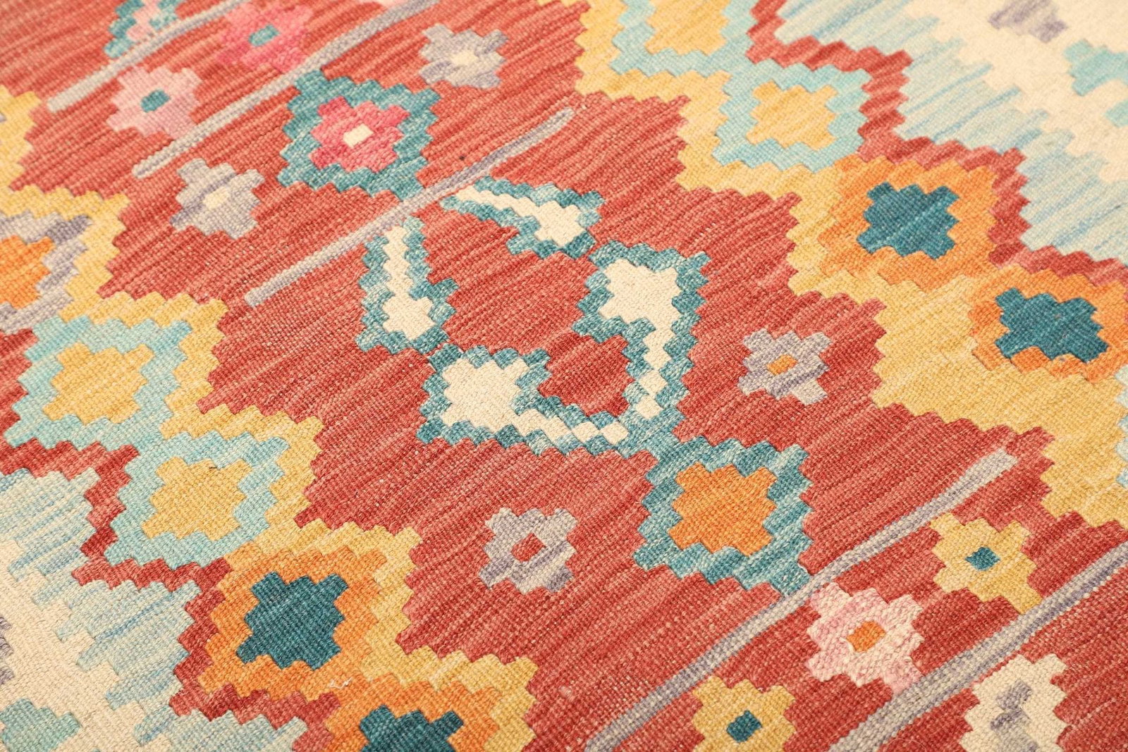 Ein weiteres Highlight dieses handgewebten Kelim Teppichs ist seine umweltfreundliche Herstellung. Die verwendete Wolle stammt häufig von Schafen, die in der jeweiligen Region gehalten werden. Dies trägt nicht nur zur Kulturellen Identität der Region bei, sondern sorgt auch für eine nachhaltige Materialbeschaffung. Darüber hinaus ist der Teppich aufgrund seiner flachen Struktur besonders pflegeleicht; Verschmutzungen lassen sich einfach abwischen und die Wolle hat eine natürliche Schmutzabweisung.