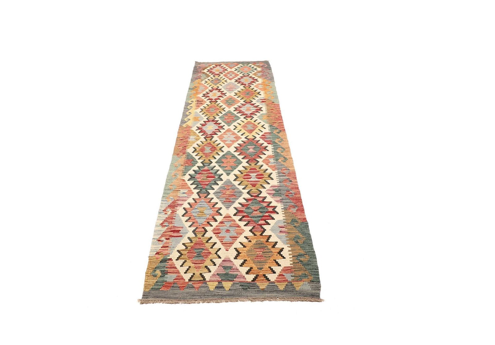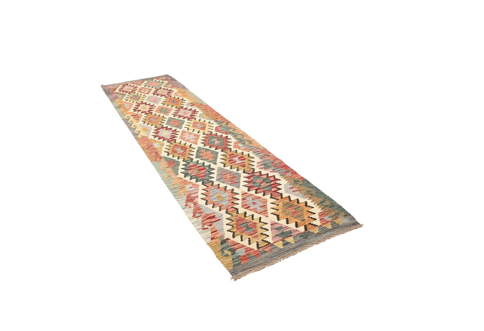 Kelim Teppich 84 x 288 cm aus Schurwolle, handgewebt, rustikal