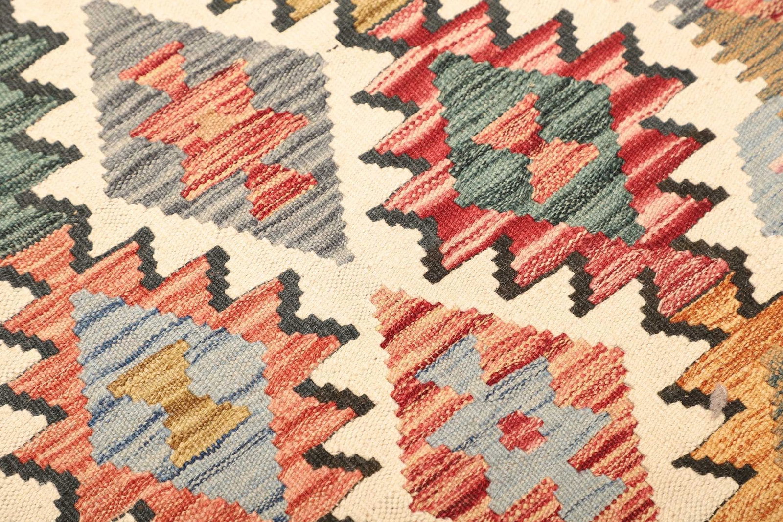 Ein weiterer Vorteil des Kelim Teppichs ist seine Pflegeleichtigkeit. Die Schurwolle hat natürliche schmutzabweisende Eigenschaften, was bedeutet, dass der Teppich auch bei täglichem Gebrauch lange schön bleibt. Zudem kann der Teppich problemlos bei Bedarf gereinigt werden, ohne dass die Farbintensität leidet.