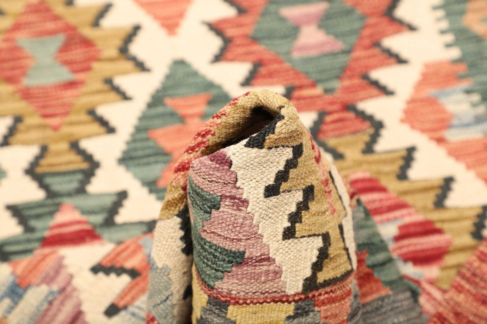 Der rustikale Look dieses Kelim Teppichs wird durch ein ansprechendes Design und traditionelle Muster geprägt. Oft sind die Designs auf Kelim Teppichen geometrisch oder symbolisch und erzählen Geschichten aus der Kultur der Hersteller. Die Farben und Muster können sowohl modern als auch klassisch wirken, wodurch sie vielfältig einsetzbar sind – in Wohnungen, Büros oder anderen Wohnräumen.