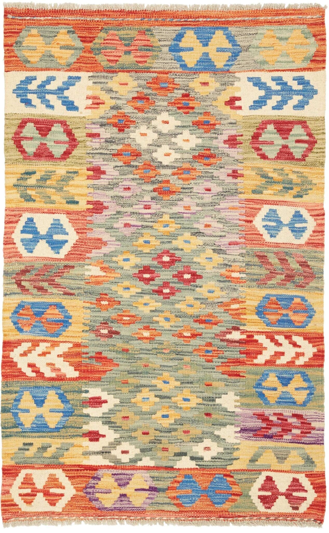 181$Ursprünglicher Preis war: 181$138$Aktueller Preis ist: 138$Kelim Teppich | Knotendichte: ca. 200.000 Knoten/m² | Material: 100% Schurwolle | Kette: 100% Baumwolle | Größe: 85×130 cm | Herkunft: Pakistan | Höhe: ca. 5 mm | Handgewebte Qualität