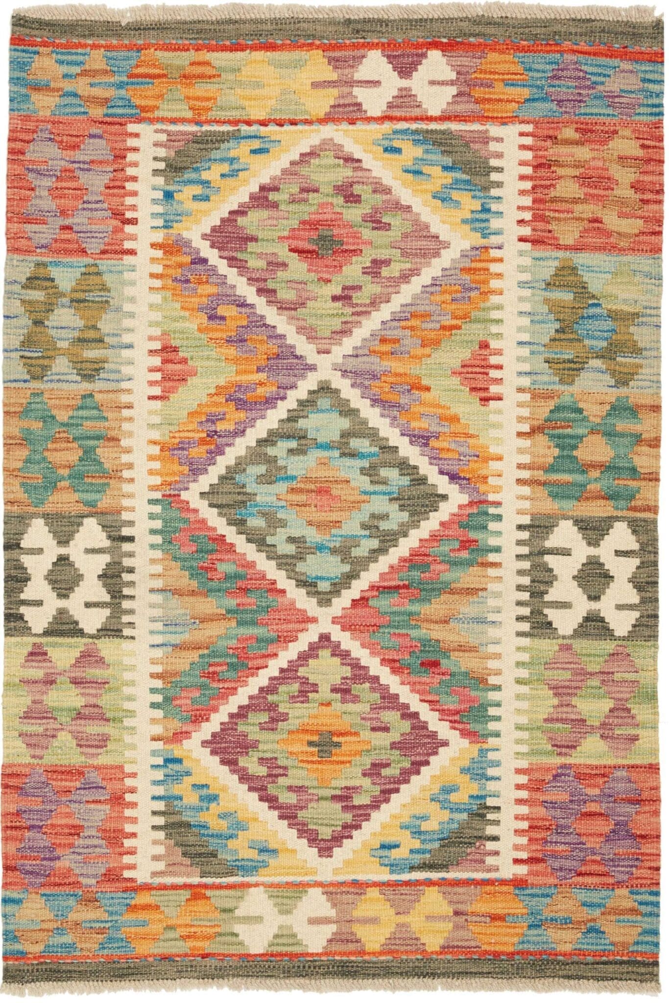Kelim Teppich 86 x 120cm aus Schurwolle, handgewebt, rustikales Flair