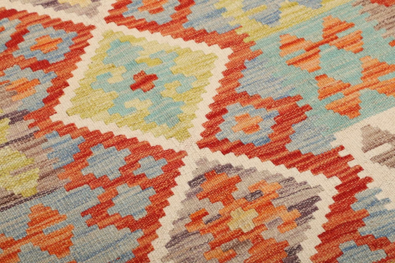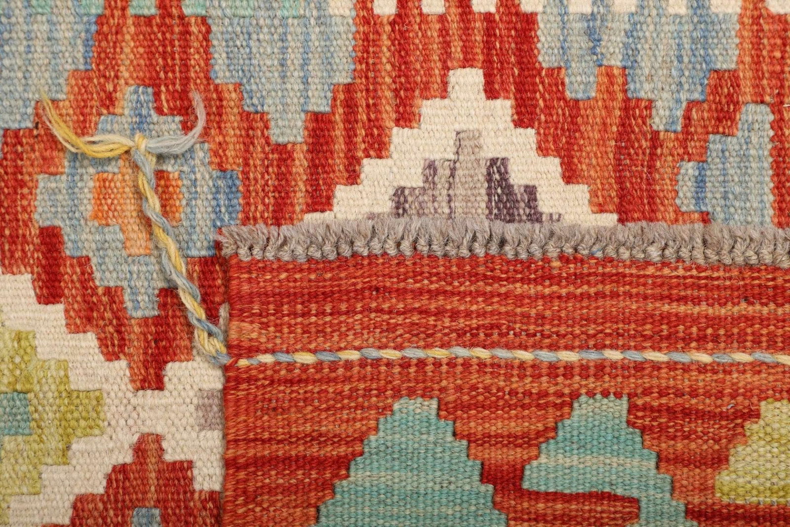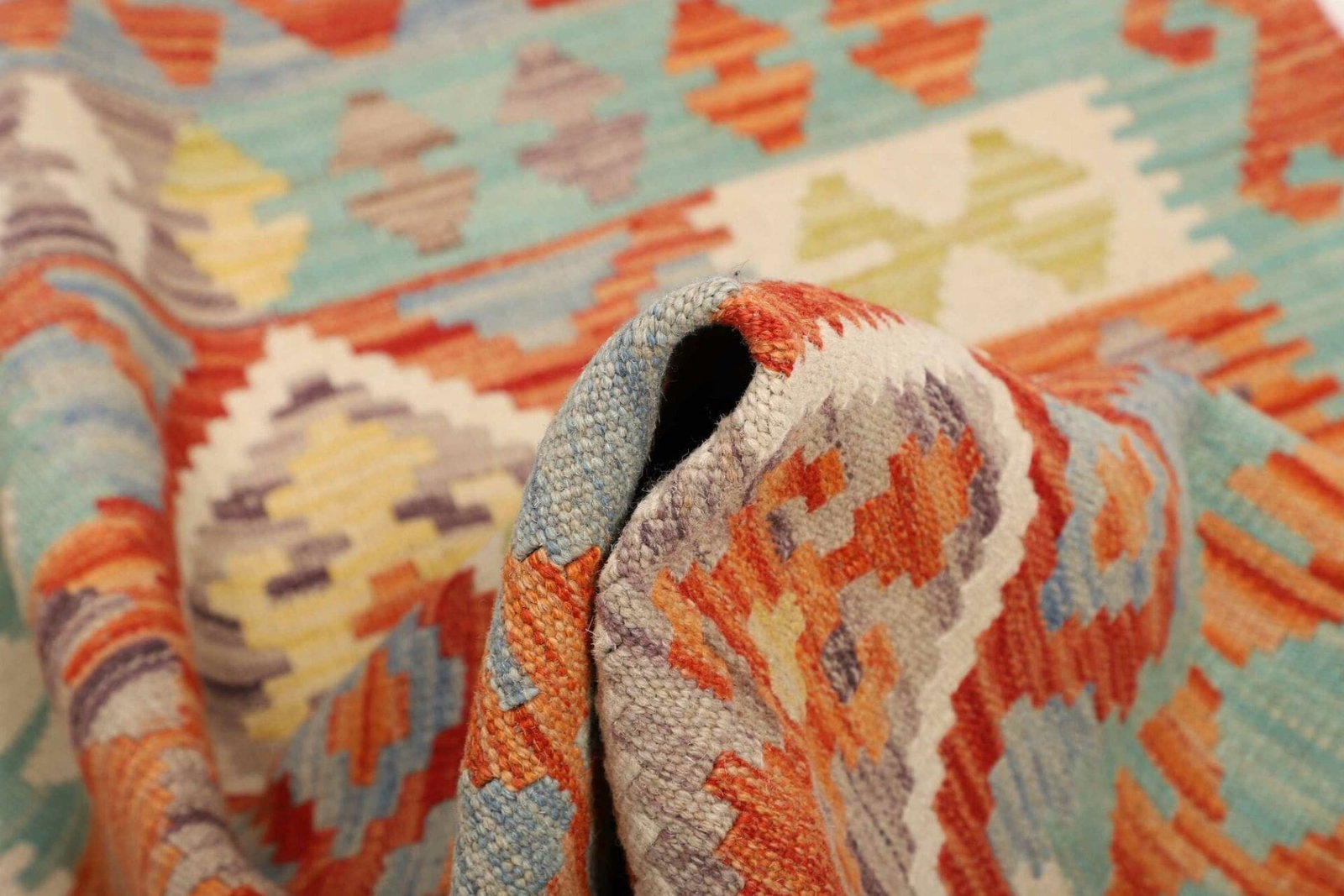 Ein besonderer Vorteil des handgewebten Kelim Teppichs ist seine Pflegeleichtigkeit. Wolle ist von Natur aus schmutzabweisend und antistatisch, was die Reinigung und den Erhalt des Teppichs erheblich erleichtert. Zudem ist Wolle ein atmungsaktives Material, das hilft, ein angenehmes Raumklima zu schaffen.