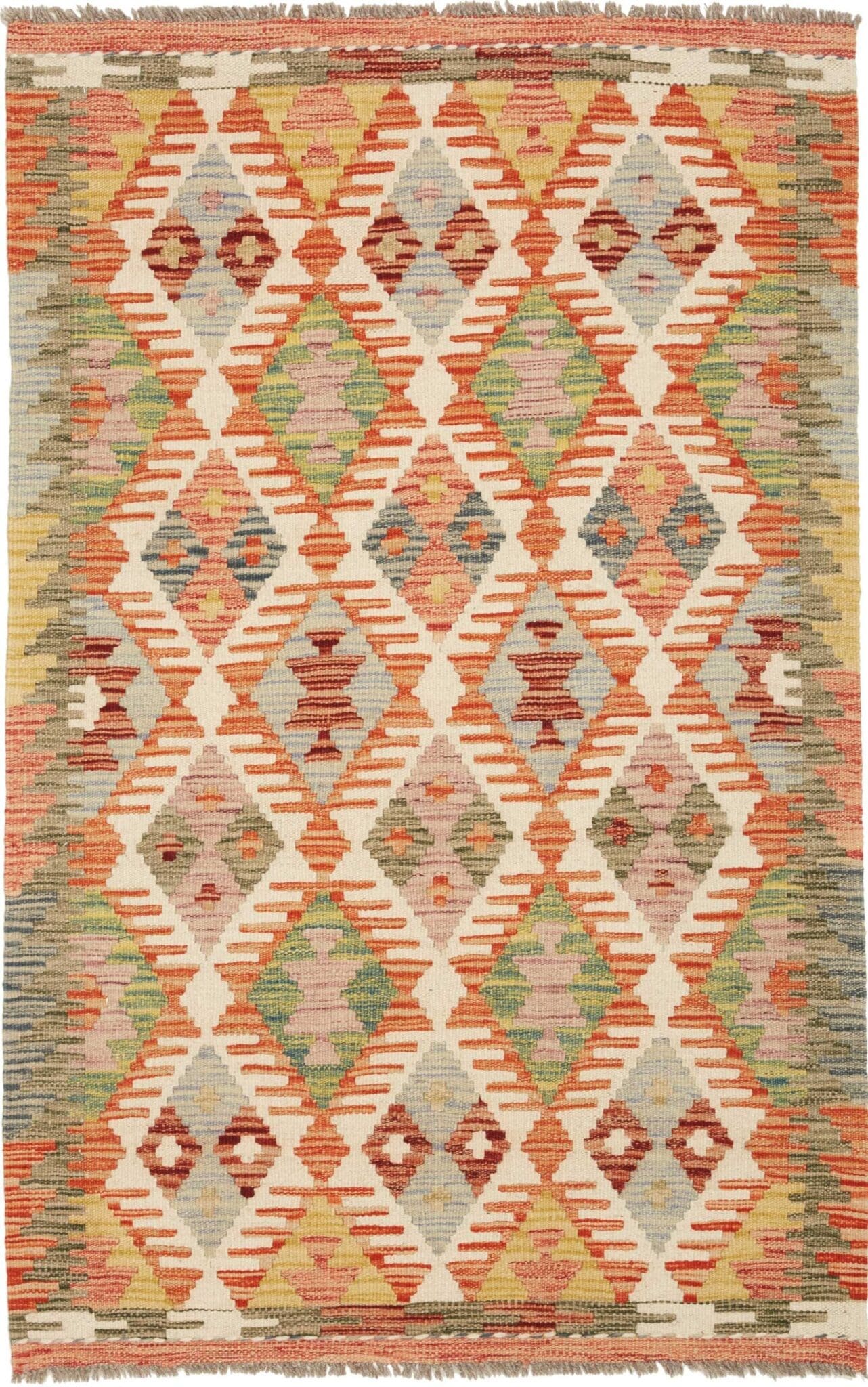 181$Ursprünglicher Preis war: 181$156$Aktueller Preis ist: 156$Kelim Teppich | Größe: 86 x 130 cm | Herkunft: Pakistan | Knotendichte: ca. 200.000 Knoten/m² | Flor: 100% Schurwolle | Kette: 100% Baumwolle | Höhe: ca. 5 mm | Handgewebte Qualität