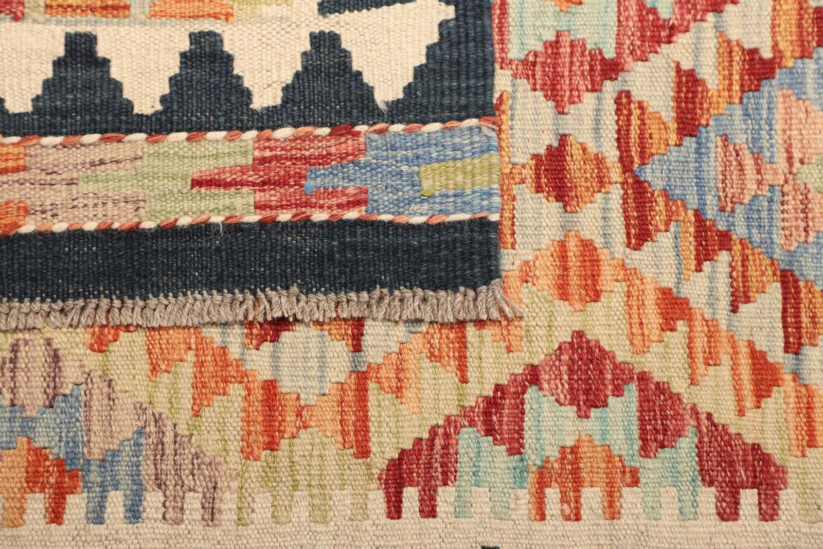 876$ In den WarenkorbKelim 215 x 144 cm – Handgewebt mit identischem Muster auf Vorder- und Rückseite – Orientteppich