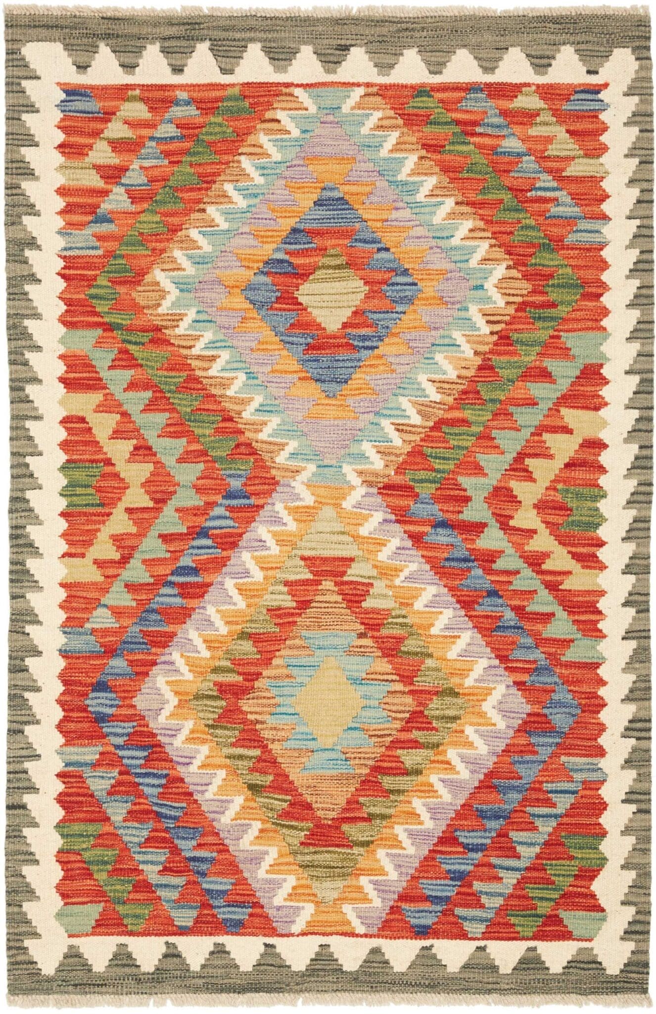 Handgewebter Kelim | Knotendichte: ca. 200.000 Knoten/m² | Material: 100% Schurwolle (Flor), 100% Baumwolle (Kette) | Größe: 87 x 129 cm | Herkunft: Pakistan | Zustand: Sehr gut | Rustikales Flair für modernen Wohnstil