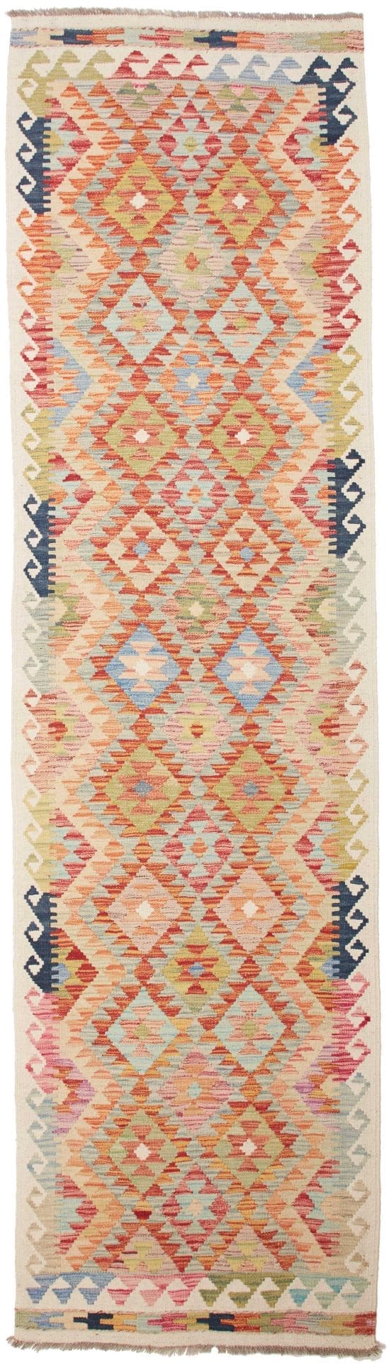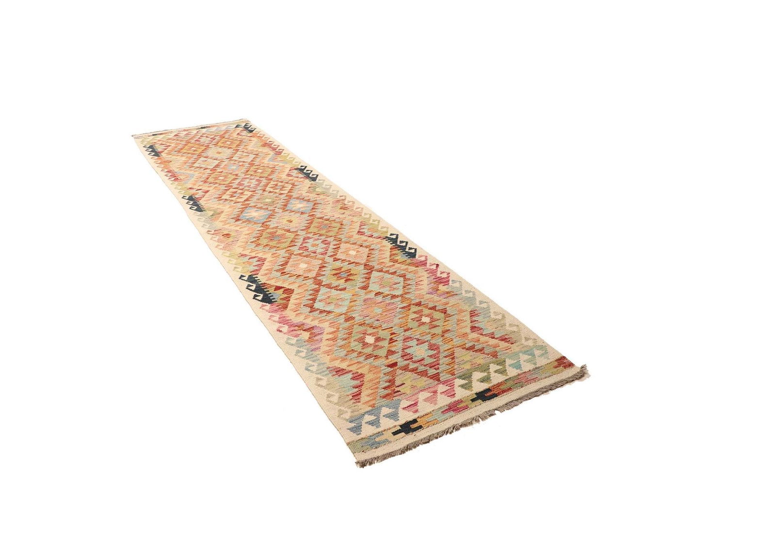 Kelim-Teppich | Knotendichte: ca. 200.000 Knoten/m² | Material: 100% Schurwolle (Flor), 100% Baumwolle (Kette) | Größe: 87 x 309 cm | Höhe: ca. 5 mm | Handgewebte Qualität | Herkunft: Pakistan | Rustikales Flair, ideal für moderne Einrichtungen