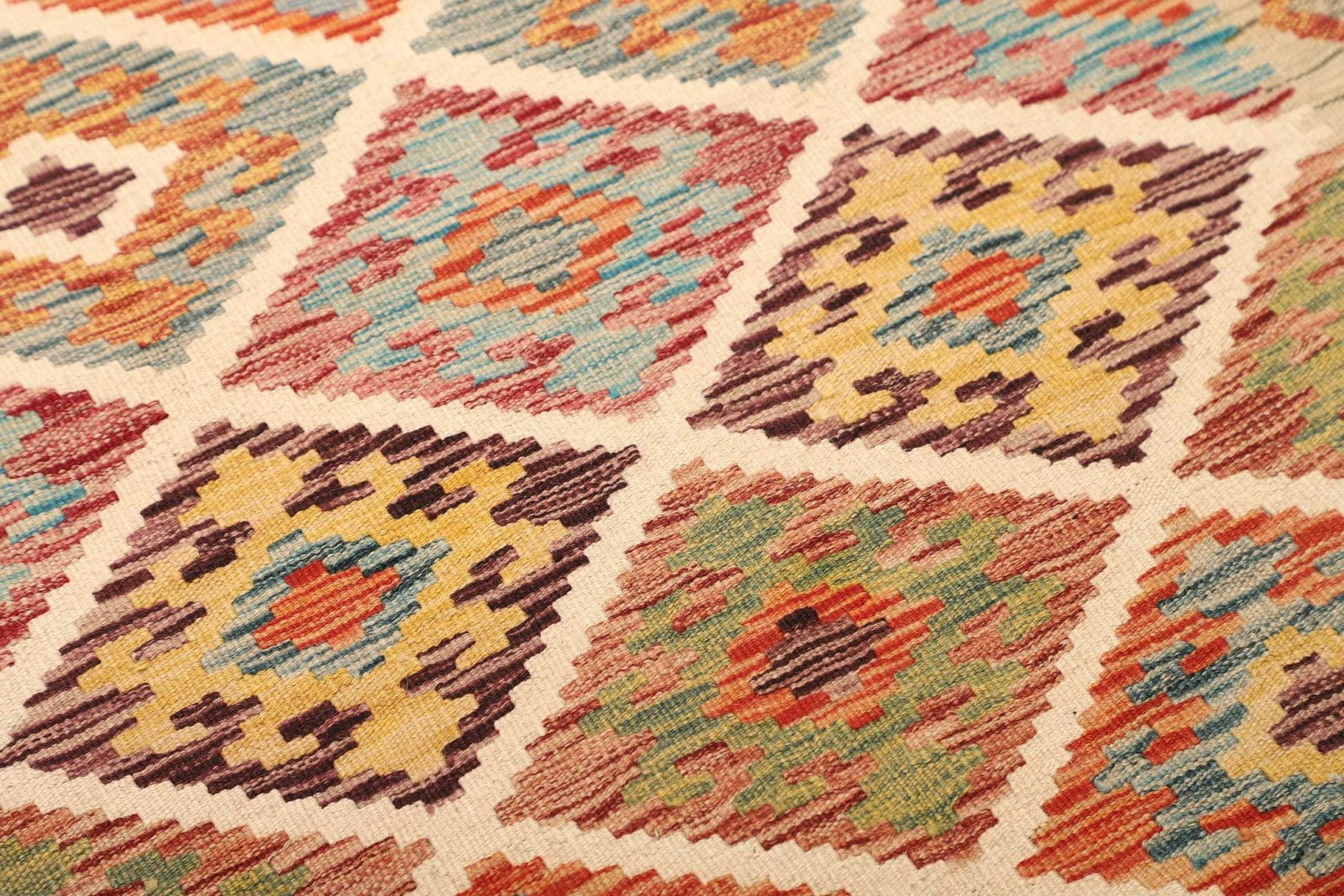 Das rustikale Design des Kelim Teppichs bringt die Schönheit der Natur ins Haus. Handgewebte Teppiche sind bekannt für ihre besondere Knotendichte, die eine hohe Strapazierfähigkeit gewährleistet. Jeder Teppich erzählt nicht nur eine Geschichte durch seine Muster und Farben, sondern bietet auch einen hohen Komfort.