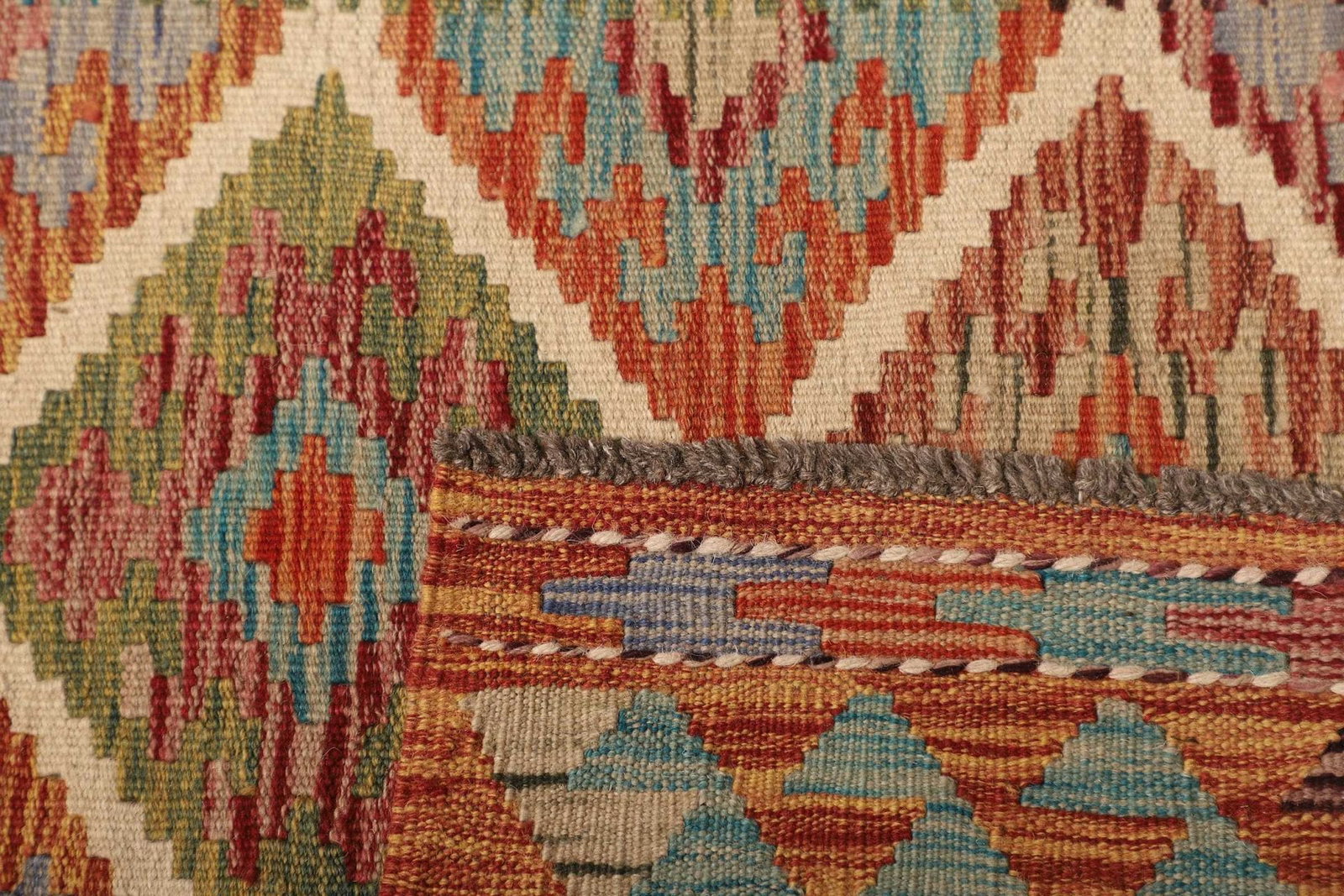 2738$ In den WarenkorbKelim 215 x 144 cm – Handgewebt mit identischem Muster auf Vorder- und Rückseite – Orientteppich