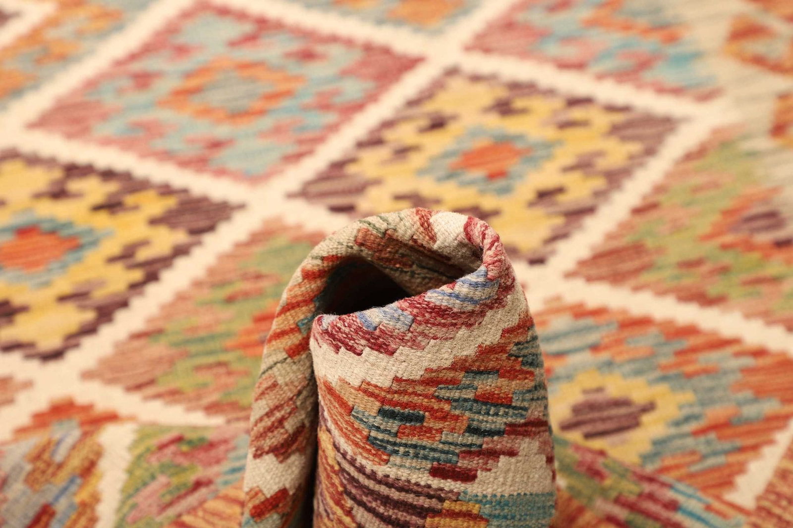Der Kelim Teppich ist ein ideales Beispiel für traditionelle Handwerkskunst, die sowohl funktional als auch ästhetisch ansprechend ist. Die Verwendung von Schurwolle als Hauptmaterial sorgt nicht nur für eine angenehme Haptik, sondern auch für eine außergewöhnliche Langlebigkeit. Jeder Teppich ist handgewebt, was bedeutet, dass er mit größter Sorgfalt und einem hohen Maß an Präzision hergestellt wurde. Diese Technik verleiht dem Teppich eine rustikale Note, die sich harmonisch in verschiedene Einrichtungsstile einfügt, von modern bis traditionell.
