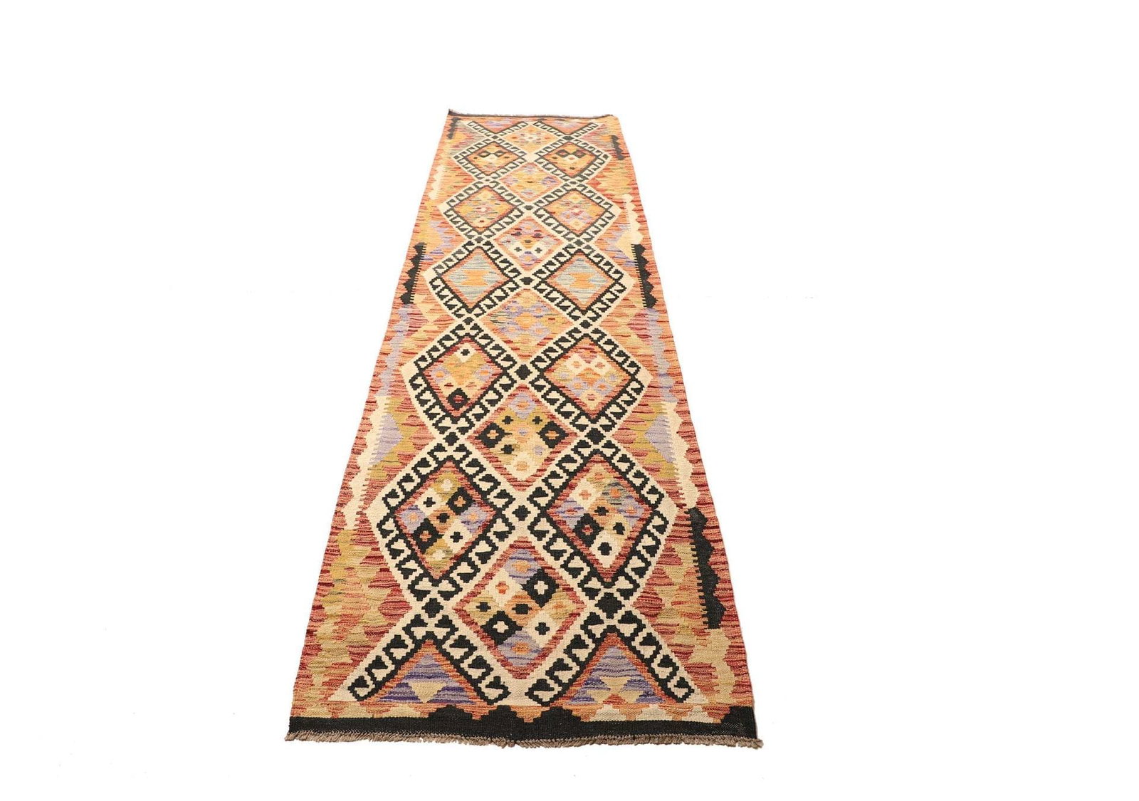 Handgewebter Kelim Teppich | Knotendichte: ca. 200.000 Knoten/m² | Flor: 100% Schurwolle | Kette: 100% Baumwolle | Größe: 89 x 316 cm | Herkunft: Pakistan | Höhe: ca. 5 mm | Rustikales Flair für moderne Einrichtungen