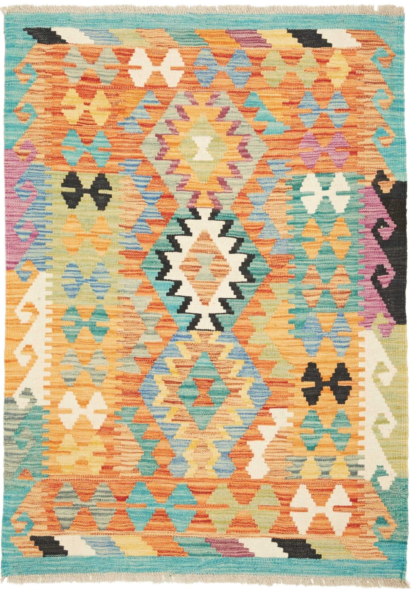 482$ In den WarenkorbKelim 215 x 144 cm – Handgewebt mit identischem Muster auf Vorder- und Rückseite – Orientteppich