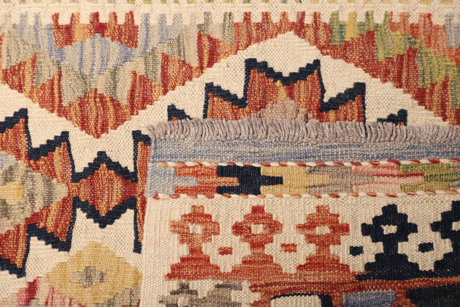 971$ In den WarenkorbKelim 215 x 144 cm – Handgewebt mit identischem Muster auf Vorder- und Rückseite – Orientteppich