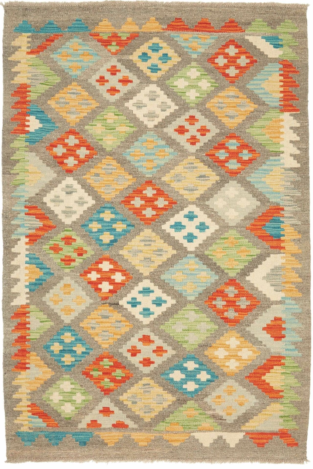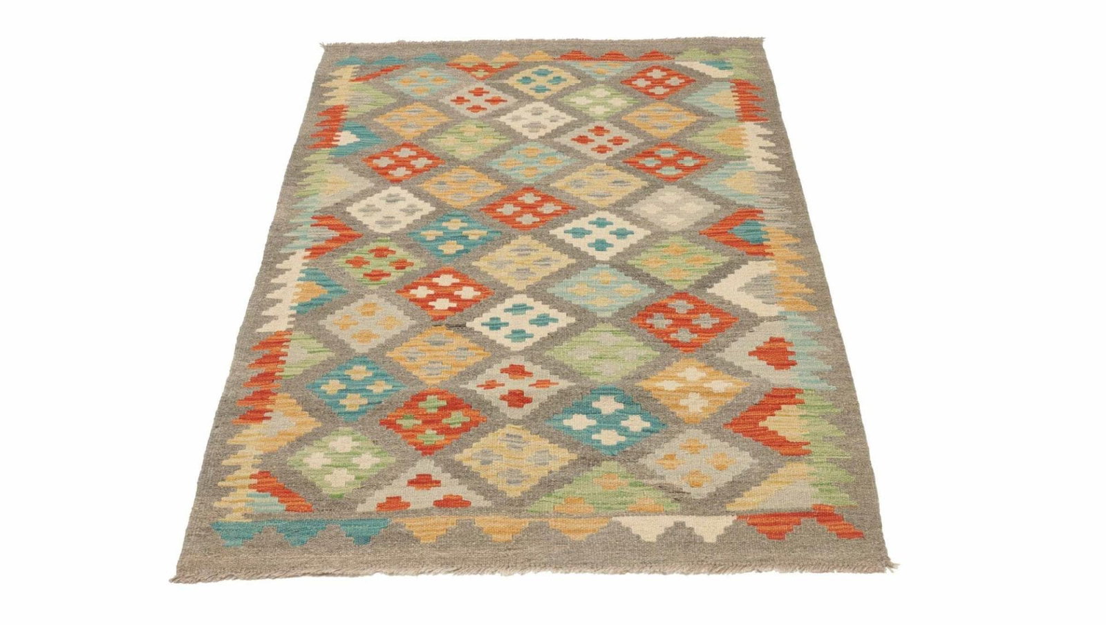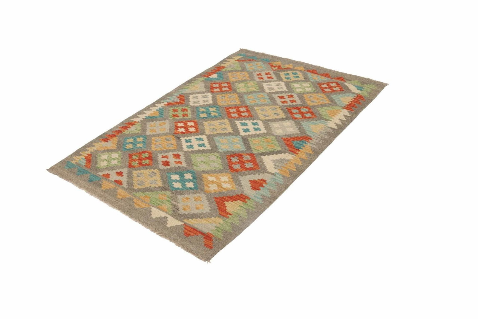 Handgewebter Kelim aus Pakistan | Knotendichte: ca. 200.000 Knoten/m² | Material: 100% Schurwolle (Flor) und 100% Baumwolle (Kette) | Größe: 97 x 150 cm | Höhe: ca. 5 mm | Rustikales Flair, ideal für moderne Einrichtungsstile | Vielseitig einsetzbar als Teppich, Vorhang oder Wandschmuck