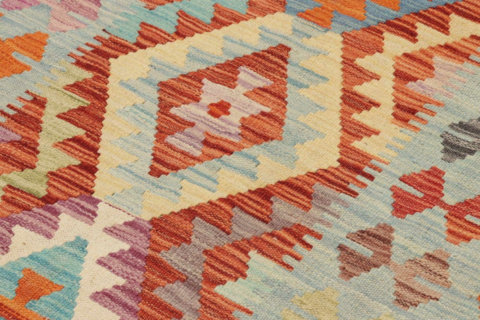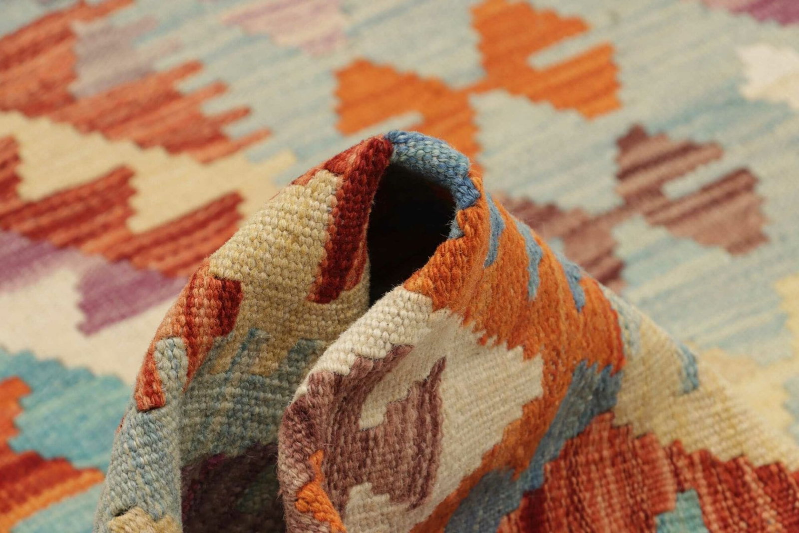 Handgewebte Kelim Teppiche aus Schurwolle sind äußerst langlebig und können bei richtiger Pflege viele Jahre halten. Ihre Widerstandsfähigkeit gegen Abnutzung macht sie ideal für stark frequentierte Bereiche.