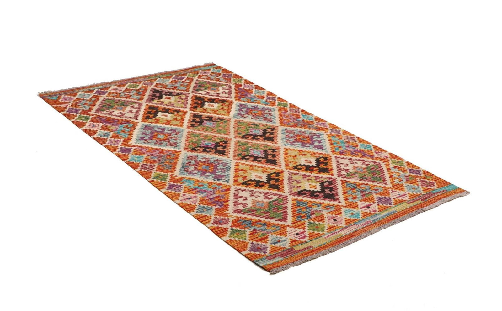 302$Ursprünglicher Preis war: 302$196$Aktueller Preis ist: 196$Handgewebter Kelim Teppich | Knotendichte: ca. 200.000 Knoten/m² | Material: 100% Schurwolle (Flor), 100% Baumwolle (Kette) | Größe: 98 x 158 cm | Herkunft: Pakistan | Höhe: ca. 5 mm | Rustikales Flair, ideal für moderne und traditionelle Einrichtungsstile